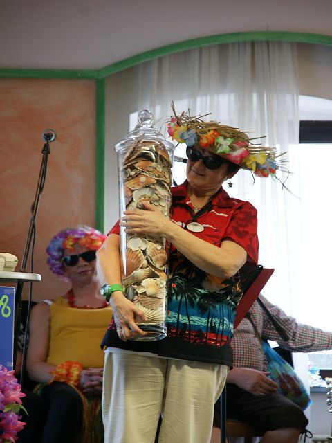 Das Tanzbein wurde bei Musik von der "Net-weit-her-Musi" kräftig geschwungen. Gemeinsam mit den angeforderten "Fitnesstrainern konnten südländische Temperaturen erreicht werden. Tolle Preise wurden an die Schätzspiel-Gewinnerinnen bzw. auch bei der Prämierung der "buntesten Strandbekleidung" überreicht. Eine Tomola mit herrlichen Preisen durfte natürlich auch nicht fehlen. Ein herzliches Danke gilt allen Spendern dieser wertvollen Sachpreise!