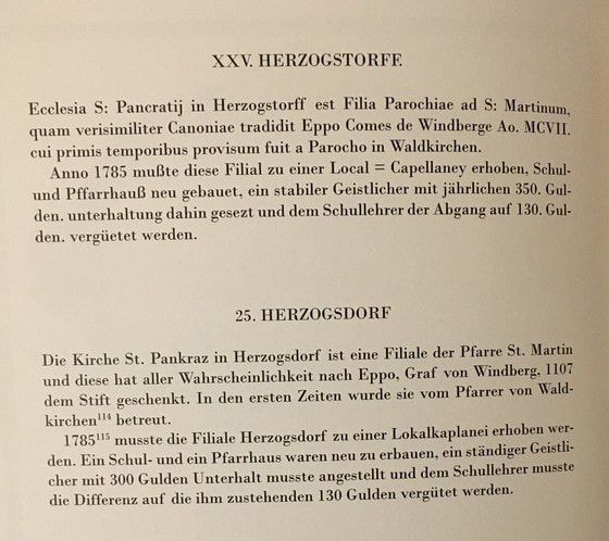 Die Kapelle war damals in einem derart verwahrlosten Zustand, dass Pfarrer Braun an den Probst des Stiftes Florian schrieb, er werde jedes Mal, wenn er in Herzogsdorf eine Messe feiere, "munklert" (übelriechend). Pfarrer Praun blieb nur zwei Jahre.