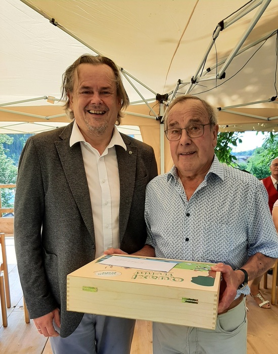 Nach dem Gottesdienst wurden zwei jahrzehntelange Mitarbeiter der Pfarre (Josef Freudenthaler und Michael Ziegler) mit Geschenken in die wohlverdiente "Ehrenamtspension" verabschiedet.
