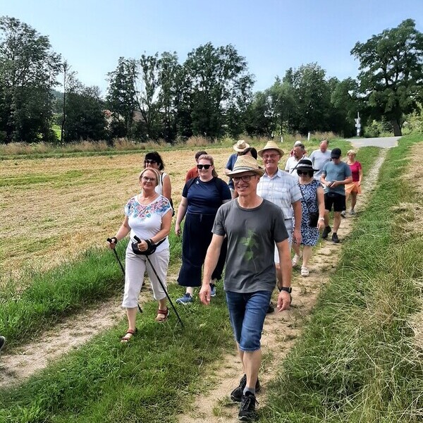 Am Sonntag, den 10. August fand heuer der Chorausflug des kleinen Kirchenchores der Pfarrgemeinde Hirschbach statt. Aus organisatorischen Gründen blieb man in der Region und genoss dort das Zusammensein. Die Mitglieder des Kirchenchores und die Organist:innen trafen sich um 10.00 Uhr beim Pfarrzentrum und dann wurde eine Wanderung durch das schöne Heimattal der Kleinen Gusen gestartet. Nach einer Rastpause und einer kurzen Schnapsverkostung bei der Familie Gitti und Rupert Wiesinger ging es weiter zu einem gemütlichen Mittagessen im wunderschönen Gastgarten des Kulturwirtshauses Pammer in der Ortschaft Guttenbrunn.