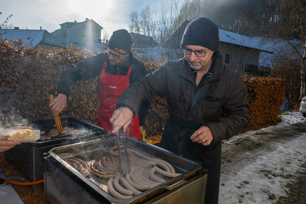 Bei wunderschönem Winterwetter wurden beim anschließendem Adventmarkt wieder Unmengen von Bratwürstel frisch gegrillt und der heiße Punsch schmeckte vorzüglich. In der Kaffeestube gab es guten Kaffee und eine große Auswahl von Kuchen und Torten. Die Ministranten hatten viele Schokospieße und einen Kinderpunsch vorbereitet, die bis Mittag ausverkauft waren. Auch die vielen vorbereiteten Adventkränze und Gestecke konnten rasch verkauft werden.