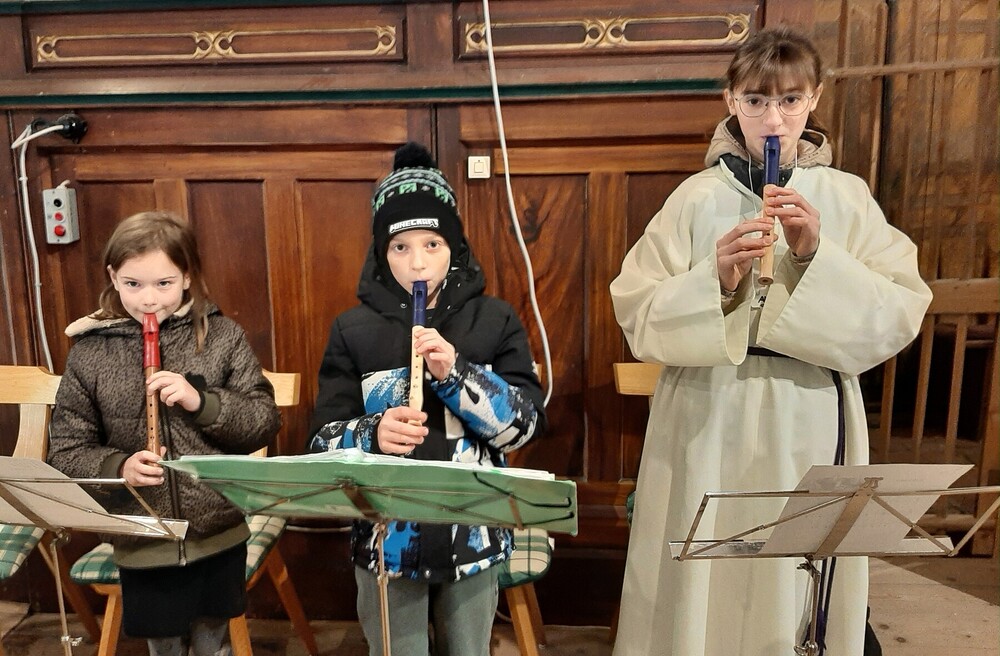 Der Pfarrgottesdienst in der Pfarrkirche vorm Adventmarkt wurde begonnen mit einer feierlichen Segnung des großen, kirchlichen Adventkranzes. Danach begleitete eine kleine Flötengruppe gemeinsam mit der Orgel den Volksgesang zum beliebten Adventlied "Wir sagen euch an den lieben Advent". Tröbinger Christian, ein begnadeter Musiker, der seit kurzem Ziehharmonika an der Bruckneruniversität in Linz studiert, umrahmte mit seinen wunderschönen, besinnlichen Weisen musikalisch die Wort-Gottes-Feier zum 1. Adventsonntag.