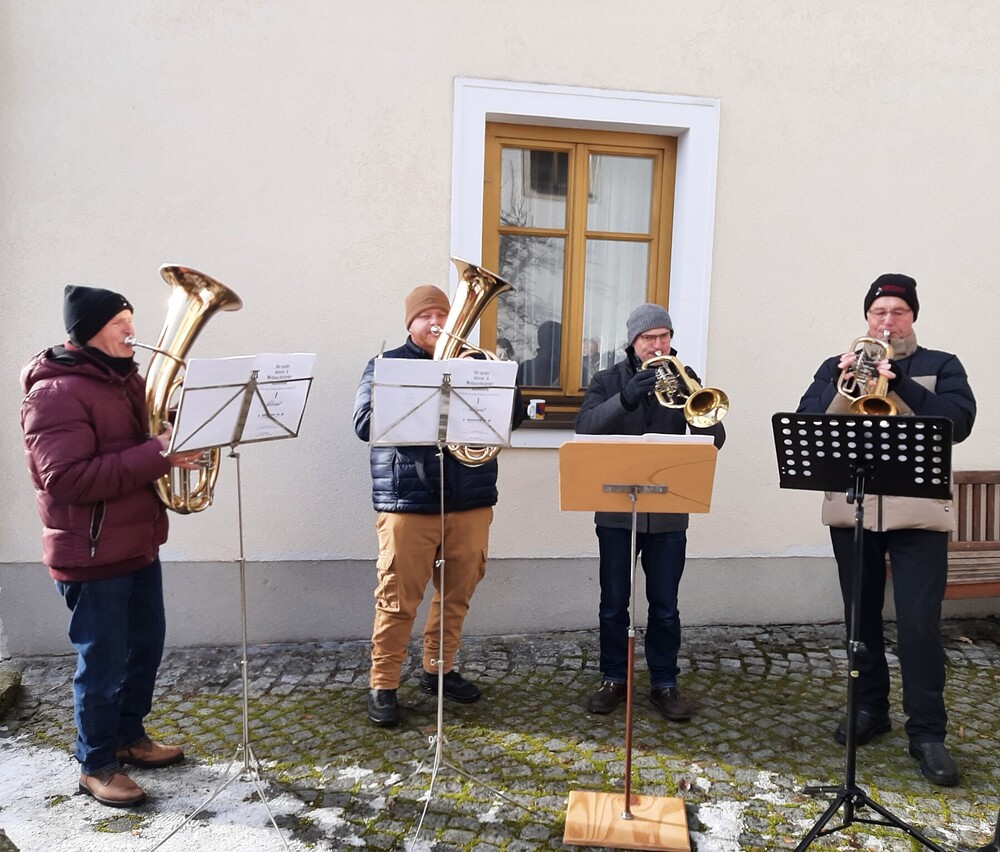 Im Hof vorm Pfarrzentrum spielte ein Bläserensemble der Musikkapelle Hirschbach die ersten weihnachtlichen Weisen und machte so die Vorfreude auf Weihnachten hörbar.