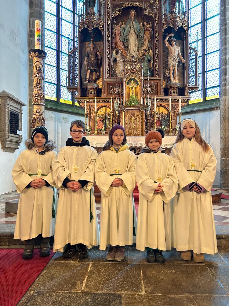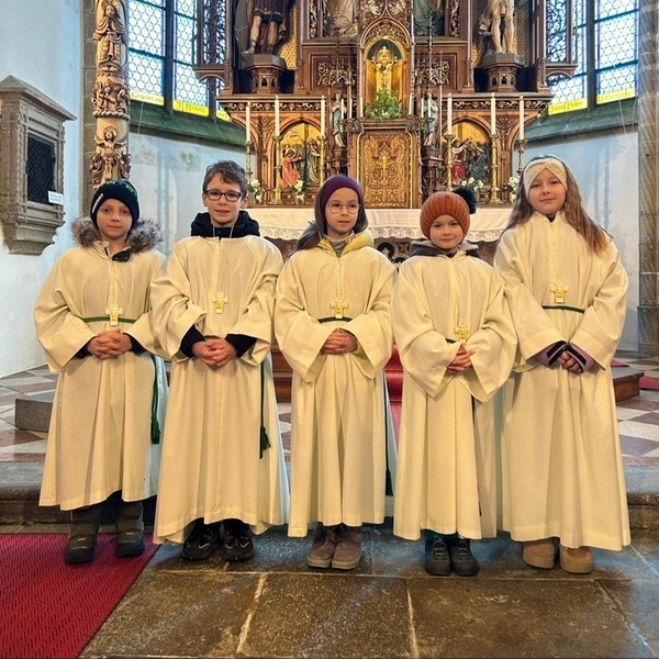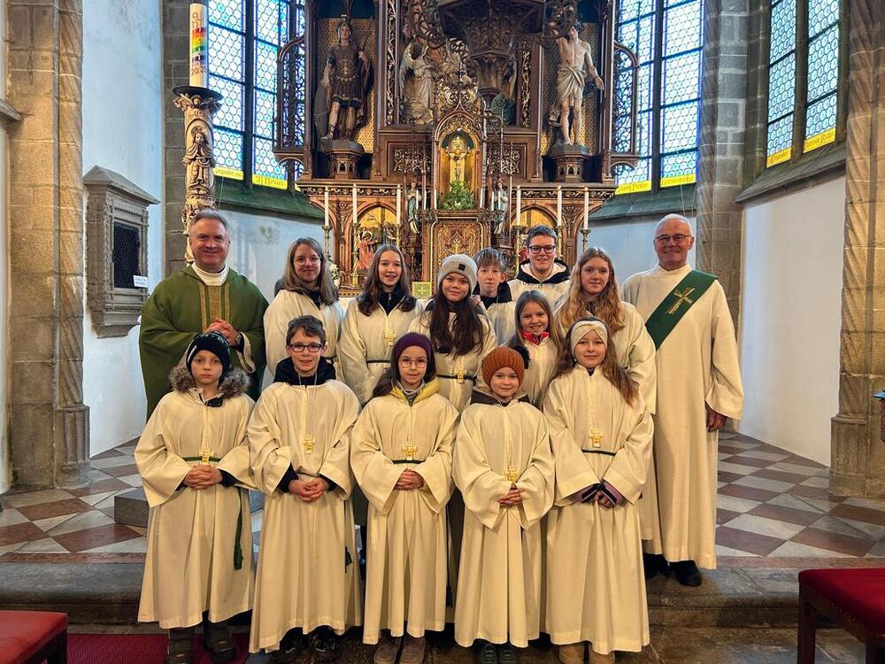 Im Rahmen des Sonntagsgottesdienstes am 15.2. wurden fünf neue Ministrant:innen für ihren Dienst in der Pfarrkirche Hirschbach beauftragt.