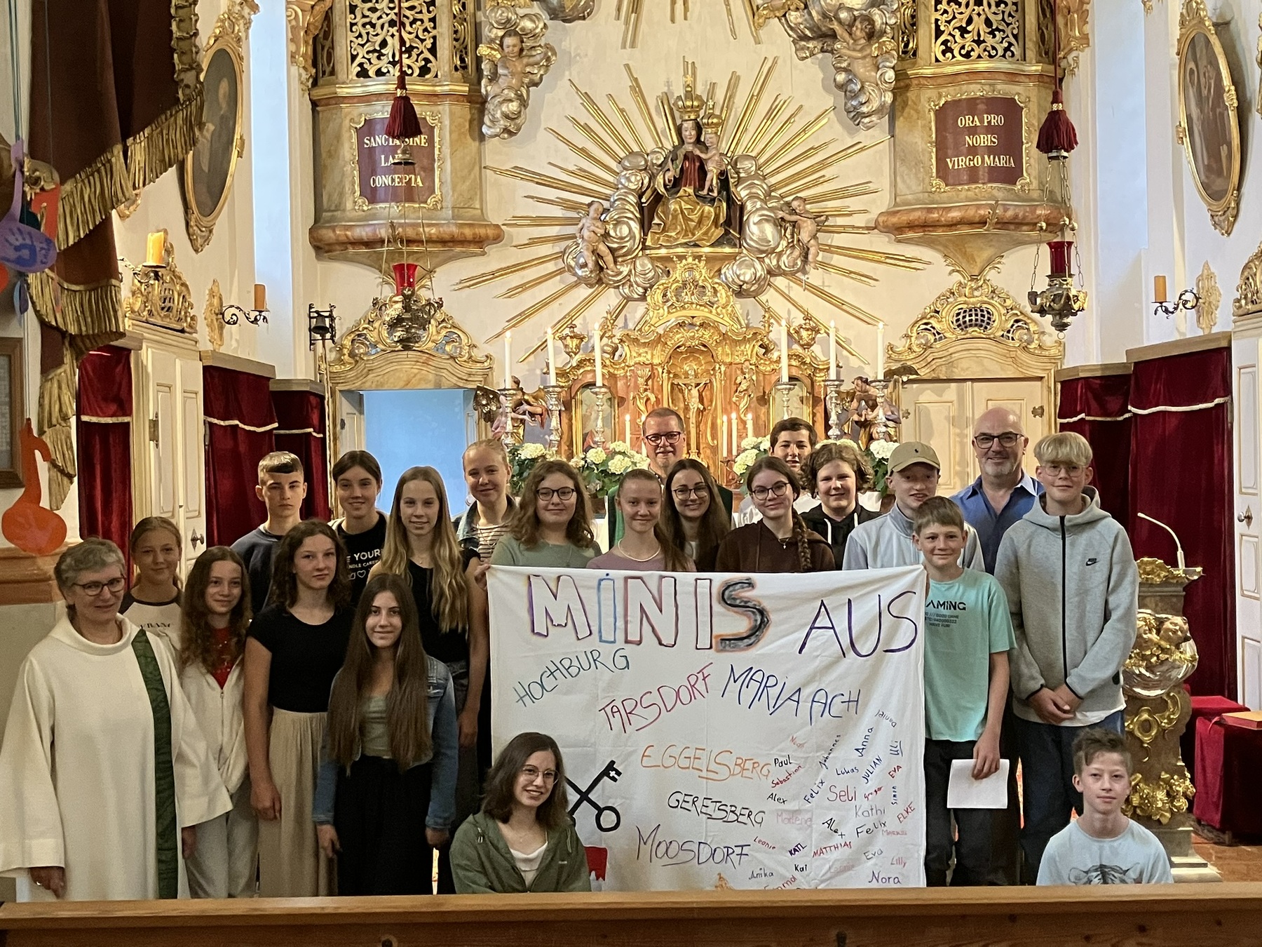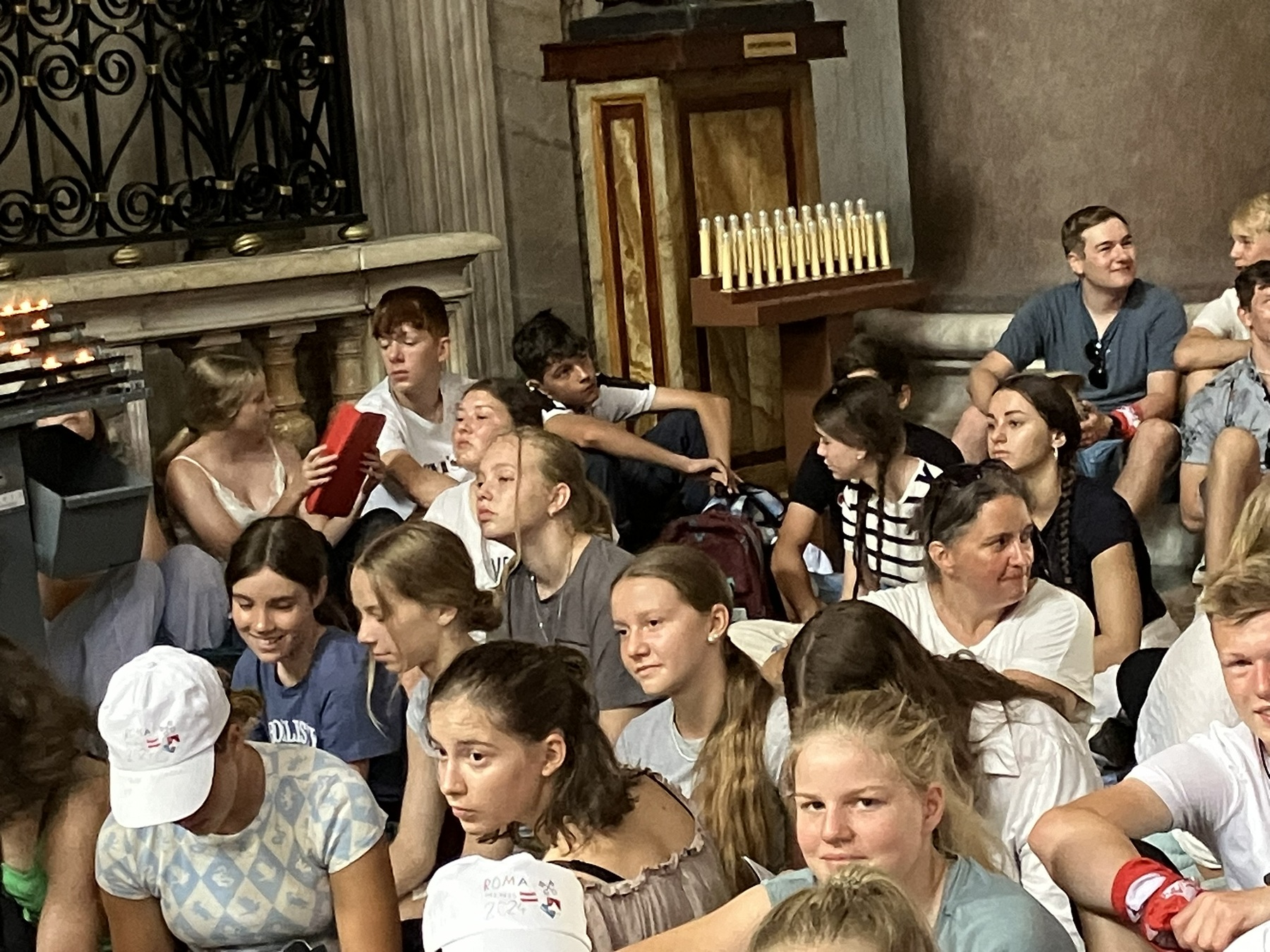Am Sonntag, den 28. Juli morgens begann das Abenteuer Rom mit einem Gottesdienst mit der Bitte um den Segen Gottes für einen guten Verlauf. Am Abend starteten wir dann in Ostermiething mit einem Bus nach Rom. Montagmorgen begann die einwöchige Erkundung der ewigen Stadt. Entlang des Tiber gings zum Peterplatz, über den Petersdom hinauf zur Kuppel, zur spanischen Treppe, dem Trevi Brunnen, dem Kolosseum, auf den Aventin, in die Katakomben, in einige Kirchen und Messen und auch zum Meer auf ein wenig Abkühlung. Aber auch viele Plätze wie die Piazza Navona, Piazza Spagna mit ihren Sehenswürdigkeiten aber auch Eisdielen wurden von uns besucht. Die Höhepunkte unserer Wallfahrt waren zweifelsohne die Papstaudienz am Dienstag Nachmittag, der Gottesdienst für alle Oberösterreichischen Ministranten und der Besuch der ÖASE (der Österreichtreffpunkt).