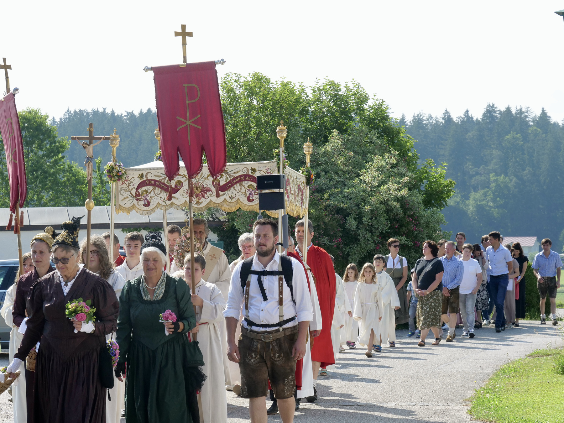Mit Ministranten, Musikkapelle, Kirchenchor, Goldhauben, Feuerwehr, Erstkommunionskindern und Vertretern der verschiedenen Vereine konnten wir gemeinsam von Altar zu Altar ziehen. Herzlichen Dank an alle Beteiligten, auch fürs Herrichten der Altäre!