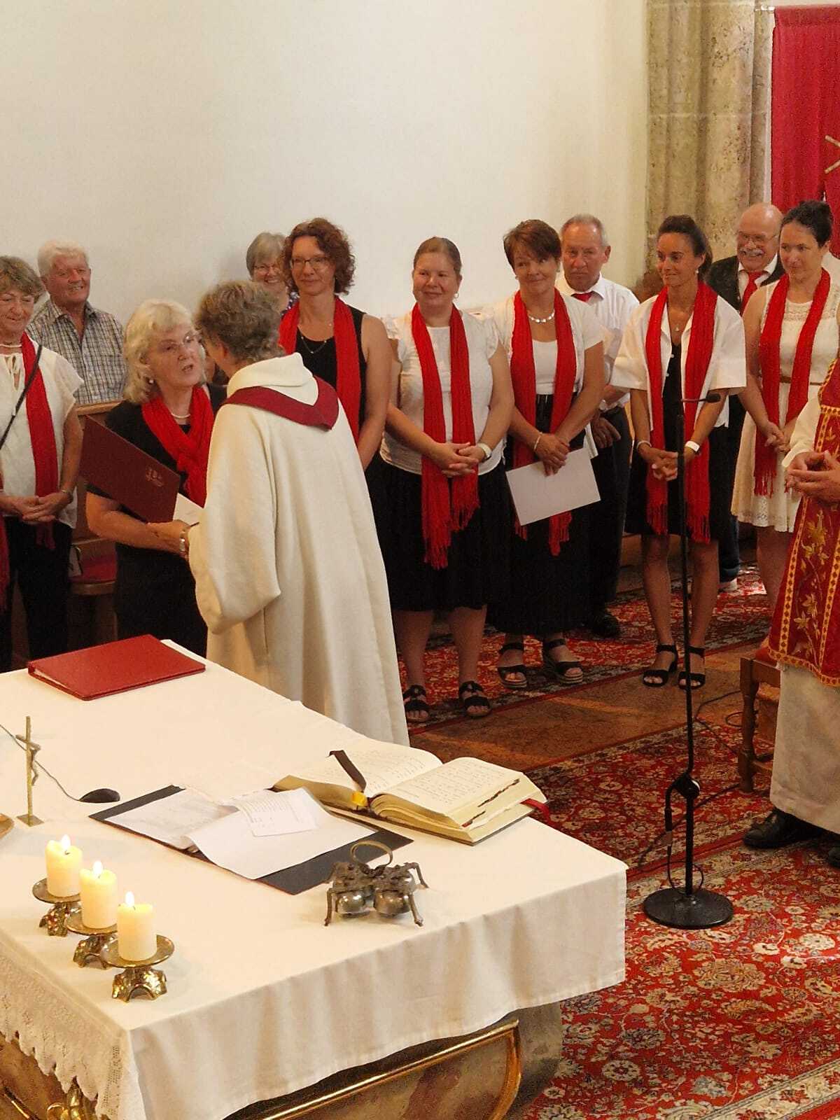In diesem festlichen Rahmen durften wir langjährige Sängerinnen und Sänger unseres Kirchenchors ehren. Ihnen wurde im Namen von Bischof Manfred eine Dankesurkunde sowie die Goldene, Silberne oder Bronzene Dankesnadel überreicht – als Zeichen der Anerkennung für ihren treuen und wertvollen Einsatz.