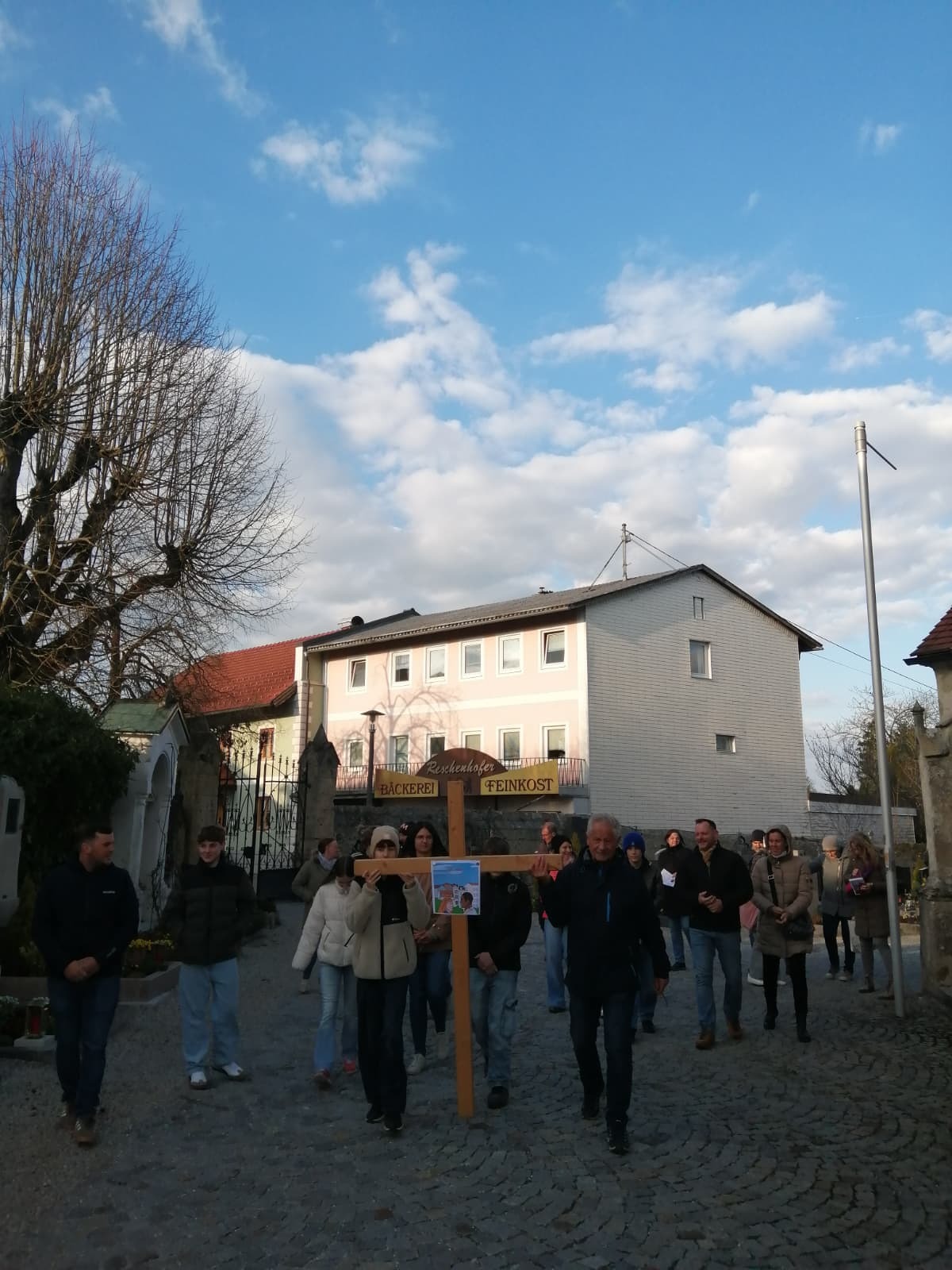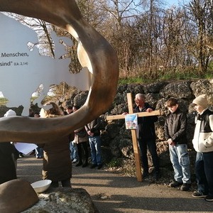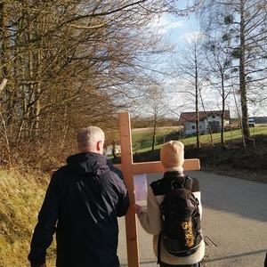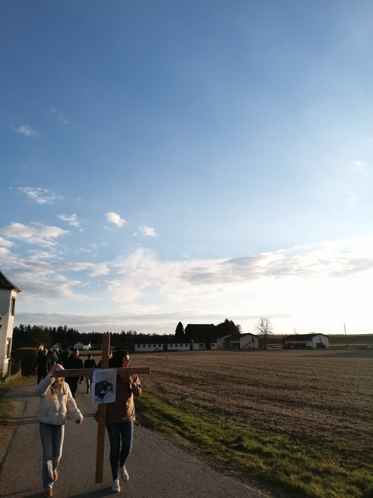 Beim Jugendkreuzweg schauen sich Jugendliche, Firmlinge mit ihrem Paten, Menschen gemeinsam auf dem Weg, den Jesus gegangen ist. Aber sie schauen nicht nur zurück, sie schauen auch auf sich. Auf das was jeden beschäftigt. Das Thema war dieses Jahr: dahinter, tiefer sehen, weiter gehen...