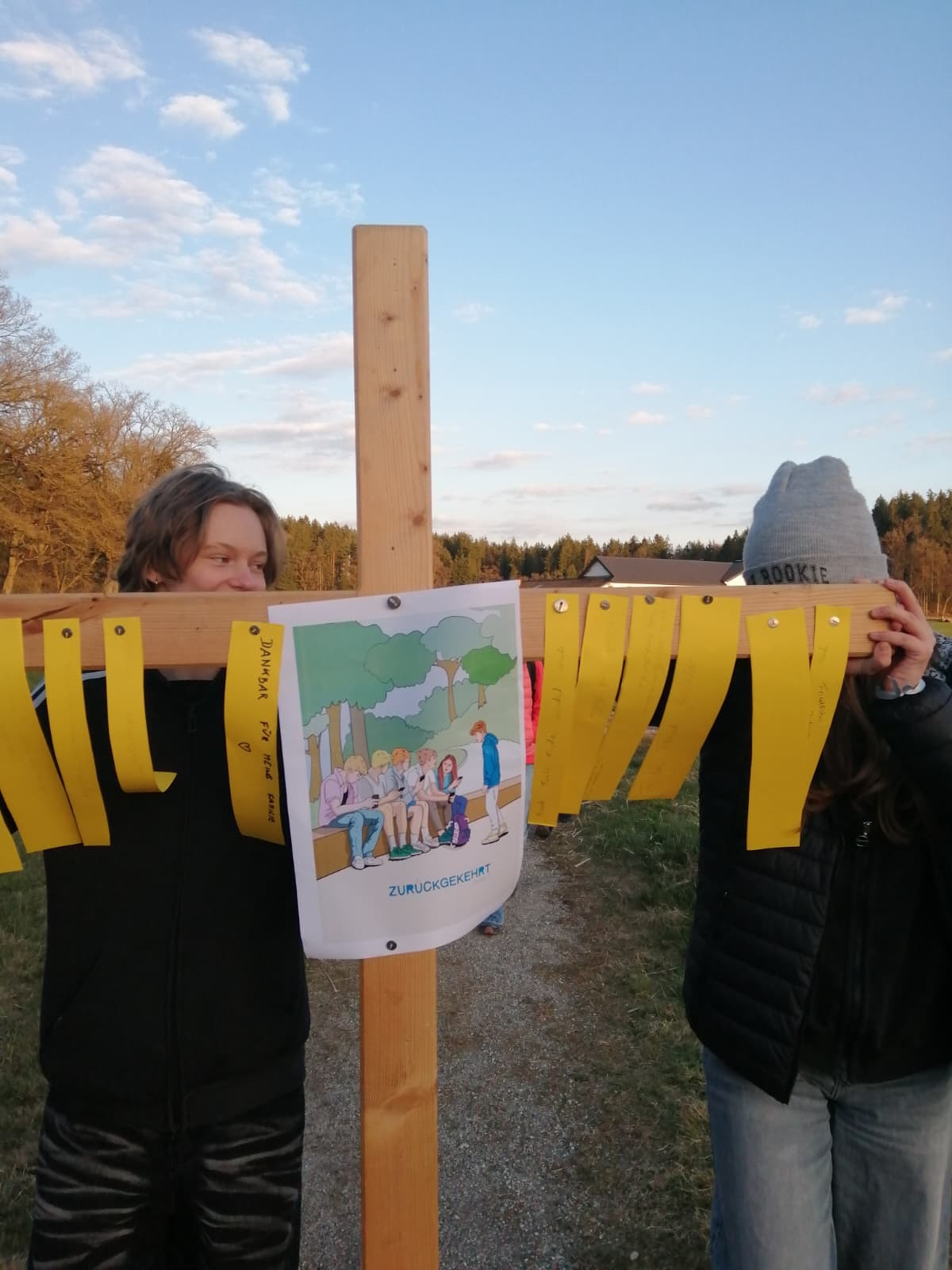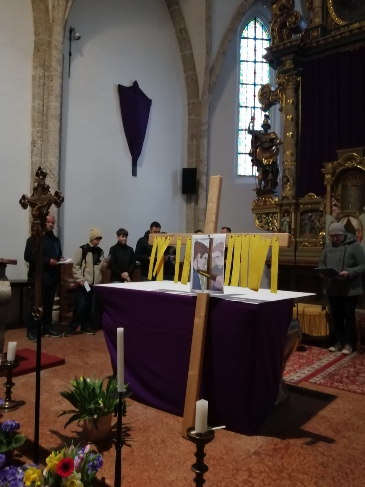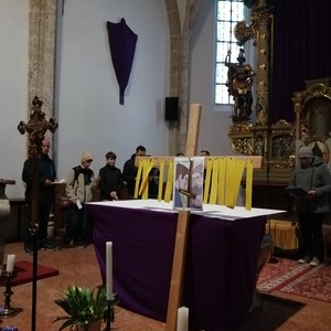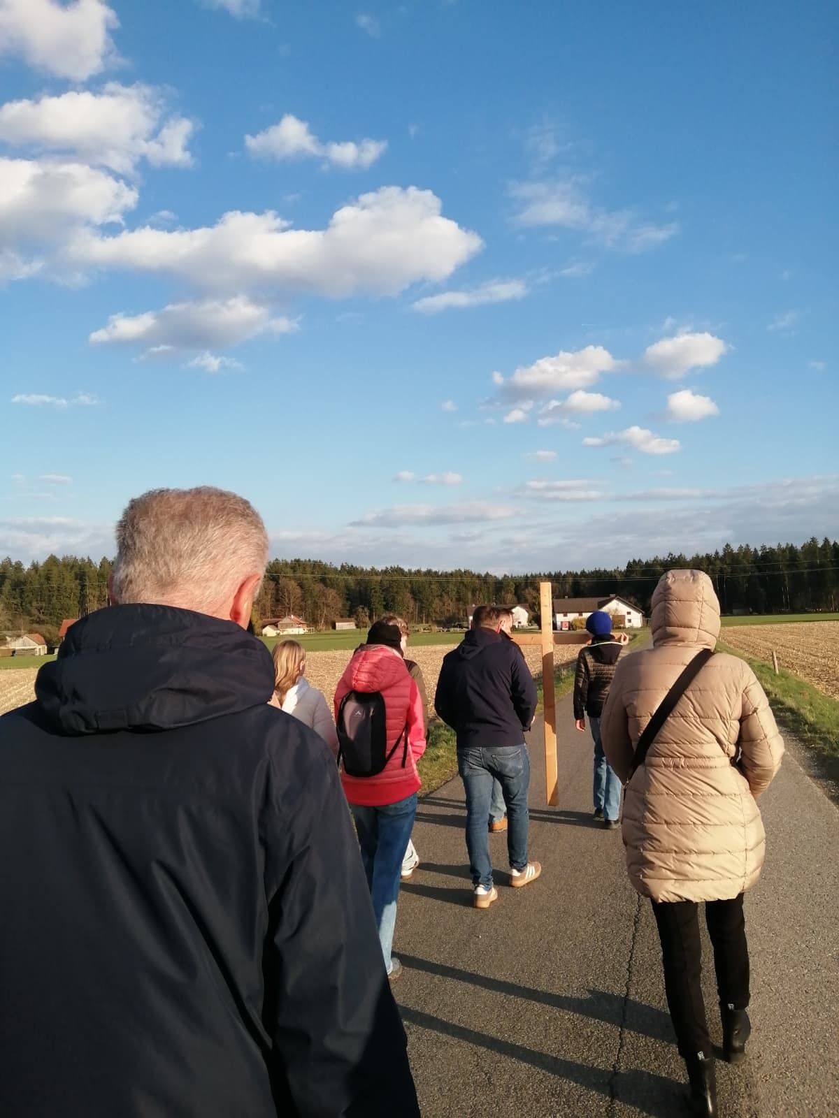 Beim Jugendkreuzweg schauen sich Jugendliche, Firmlinge mit ihrem Paten, Menschen gemeinsam auf dem Weg, den Jesus gegangen ist. Aber sie schauen nicht nur zurück, sie schauen auch auf sich. Auf das was jeden beschäftigt. Das Thema war dieses Jahr: dahinter, tiefer sehen, weiter gehen...
