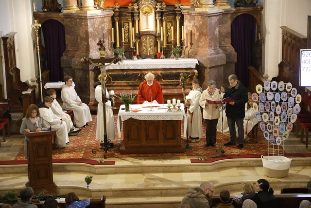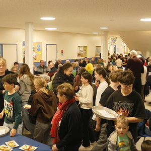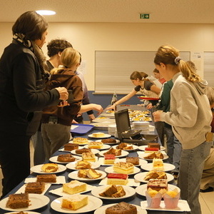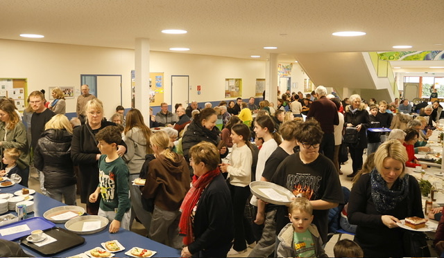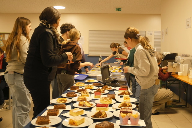 Im Anschluss fand ein gemütliches Beisammensein in der Aula der Mittelschule statt. Die Firmkandidatinnen luden zu selbstgemachten Kuchen und Aufstrichbroten ein. Das Firmprojekt fand großen Anklang – über 25 Kinder meldeten sich, um mitzuhelfen. Der Reinerlös kommt der Renovierung des Pfarrzentrums zugute.