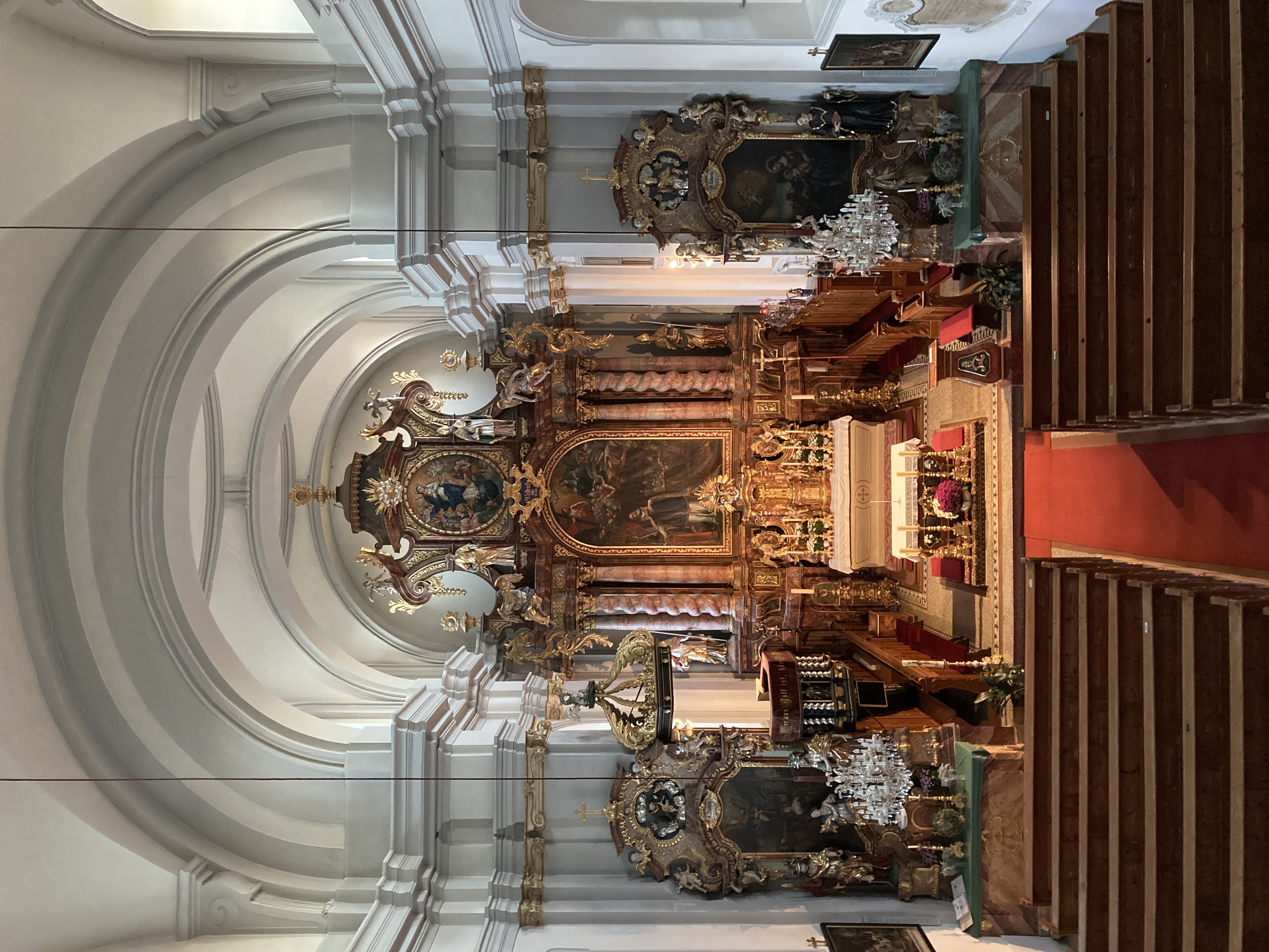 Unten die Plastiken der Heiligen Nikolaus und Wolfgang, oben Stefan und Gotthard.