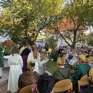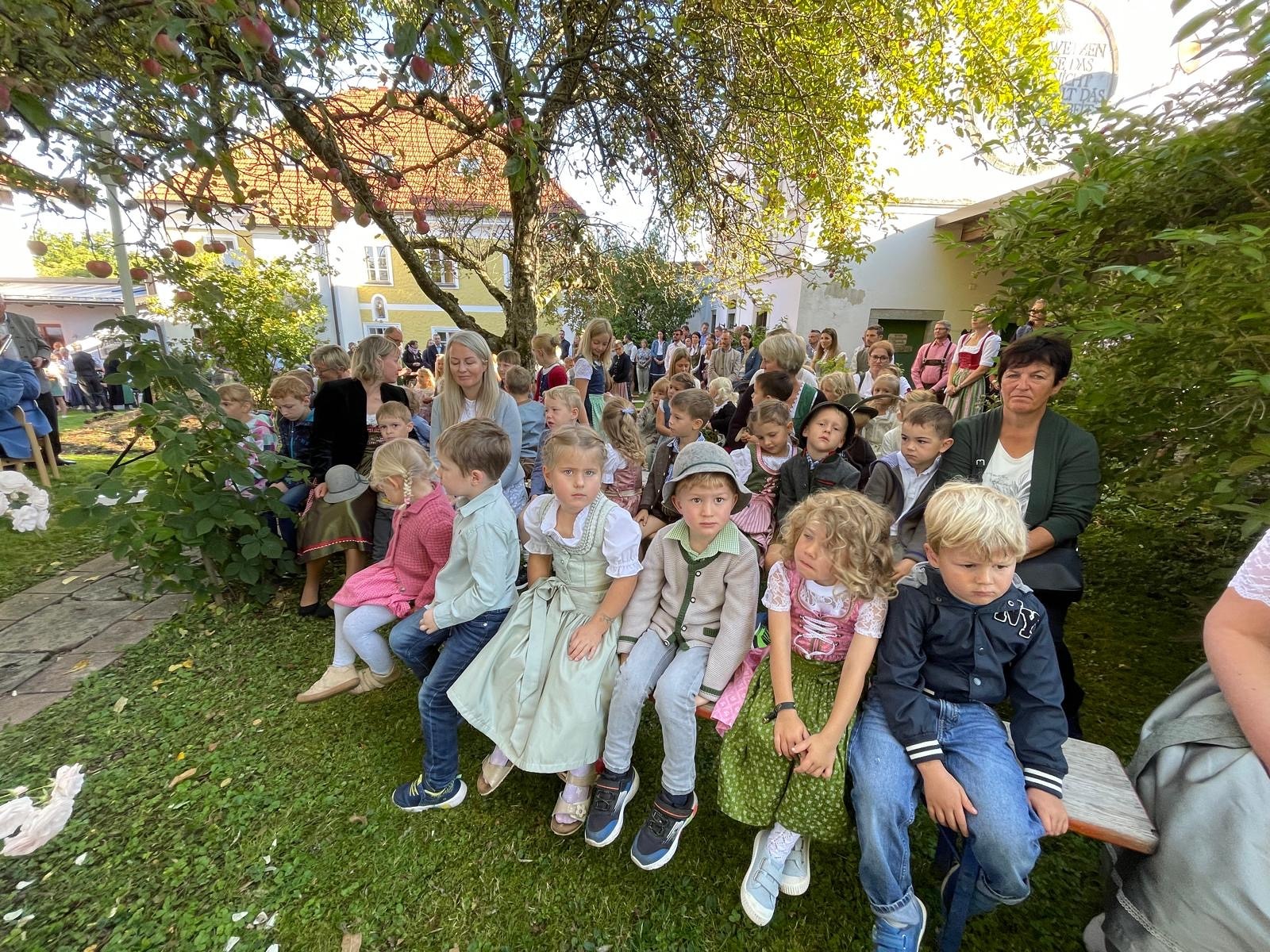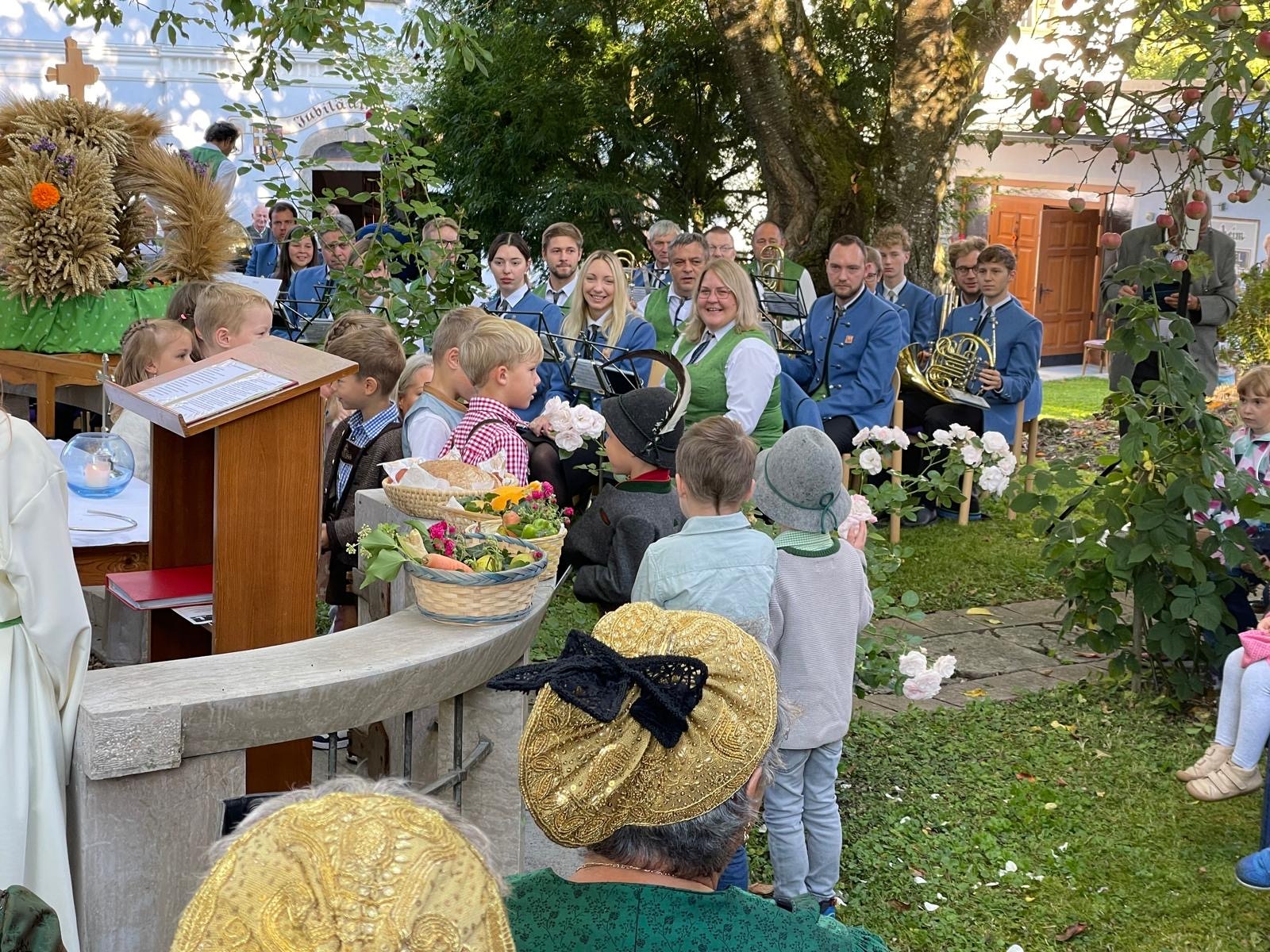Bei herrlichem Spätsommer-Wetter war heuer wieder ein Erntedankfest im Pfarrhofgarten möglich. Nach dem Gottesdienst lud die Pfarre noch zu einem kleinen Frühschoppen mit Würsteln und Getränken ein.