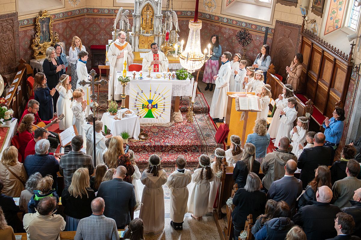 Am 18. Mai 2025 haben wir unter dem Motto „Jesus, du Brot des Lebens“ mit P. Vincent das Fest der Erstkommunion gefeiert.