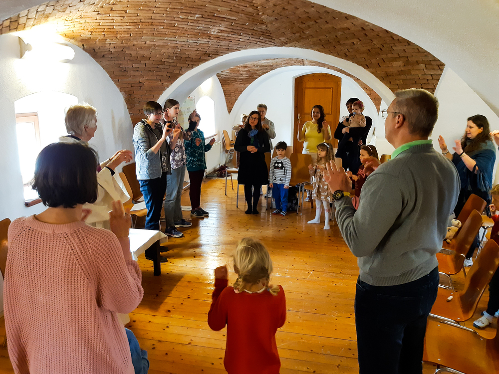 Es ist ein sehr `sinnlicher´ Kindergottesdienst mit Gebärdensprach-Begleitung, Querflötenmusik, vielen neuen Erfahrungen und vielen Sinneseindrücken.