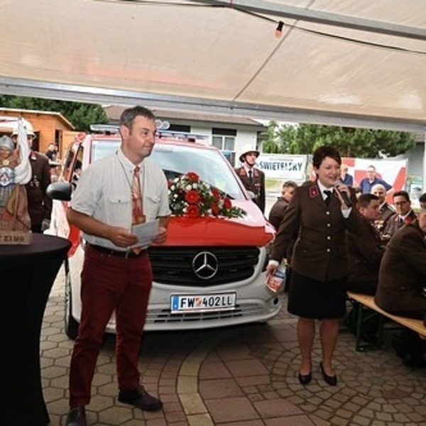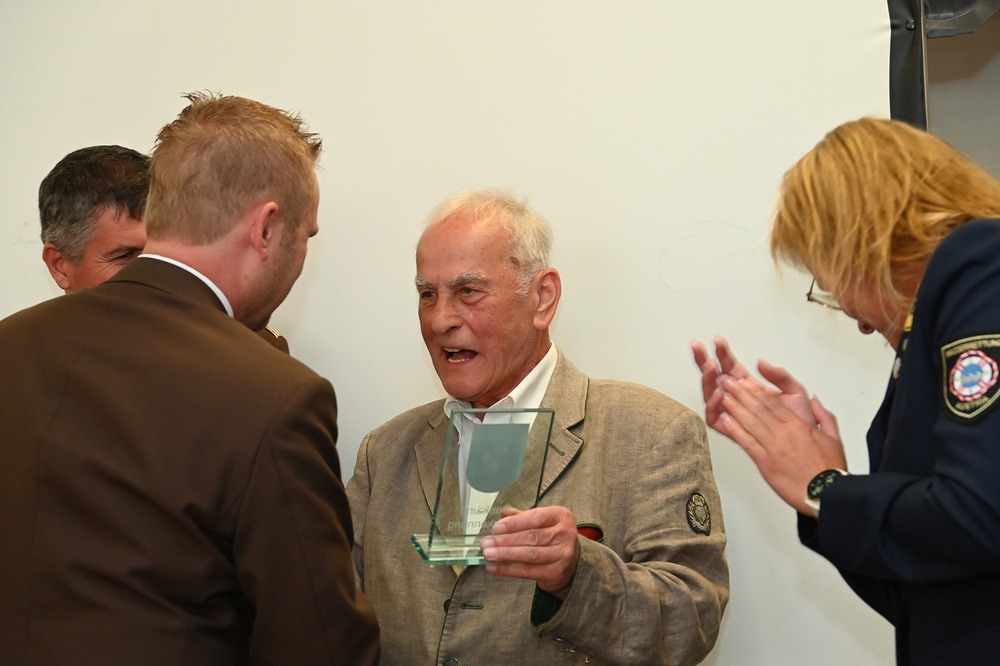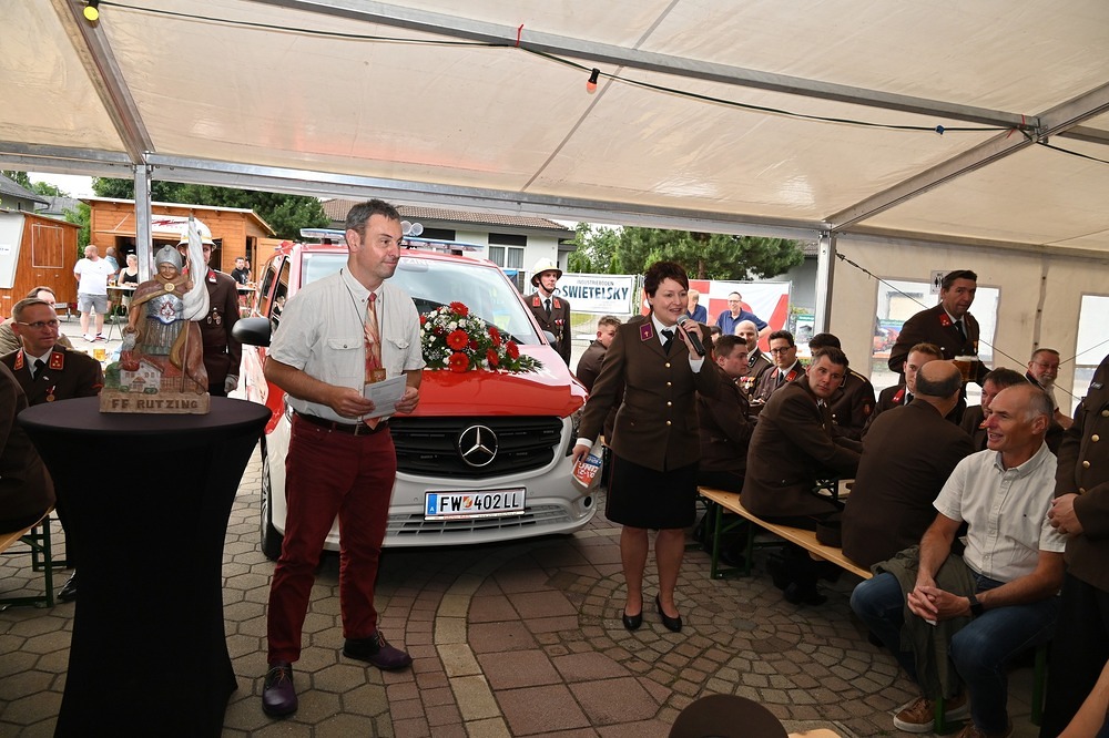 Neben dem neuen MTFA wurde auch der von unserem ehrenamtlichen Mesner und Künstler Franz Grömer geschnitzte Schutzpatron für die Feuerwehr gesegnet. Sichtlich gerührt bekam er dafür von Kommandant HBI Jörg Lorinser eine Auszeichnung überreicht.