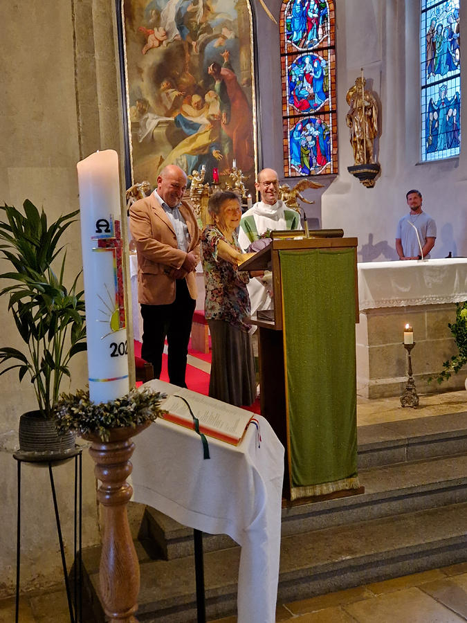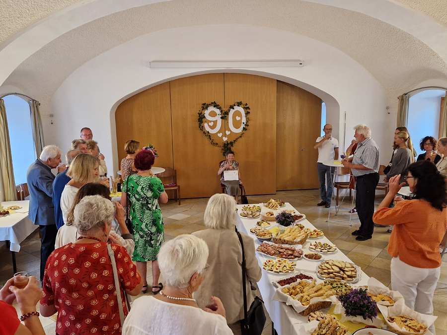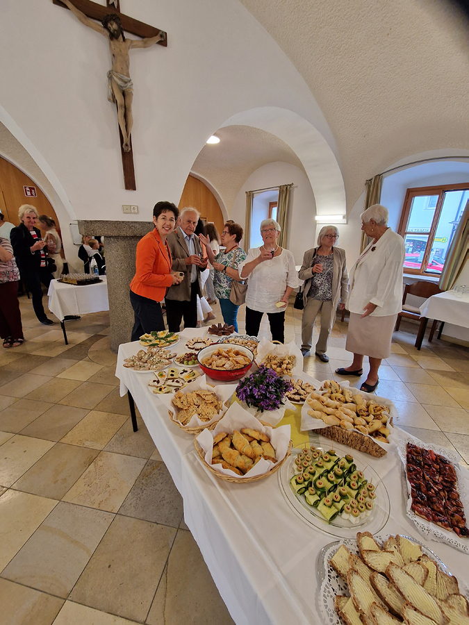 Als Dank für die jahrelange Treue richtete die KFB im Anschluss eine Agape im Pfarrsaal aus, und viele Pfarrmitglieder nutzten die Gelegenheit, der rüstigen Jubilarin zu gratulieren.