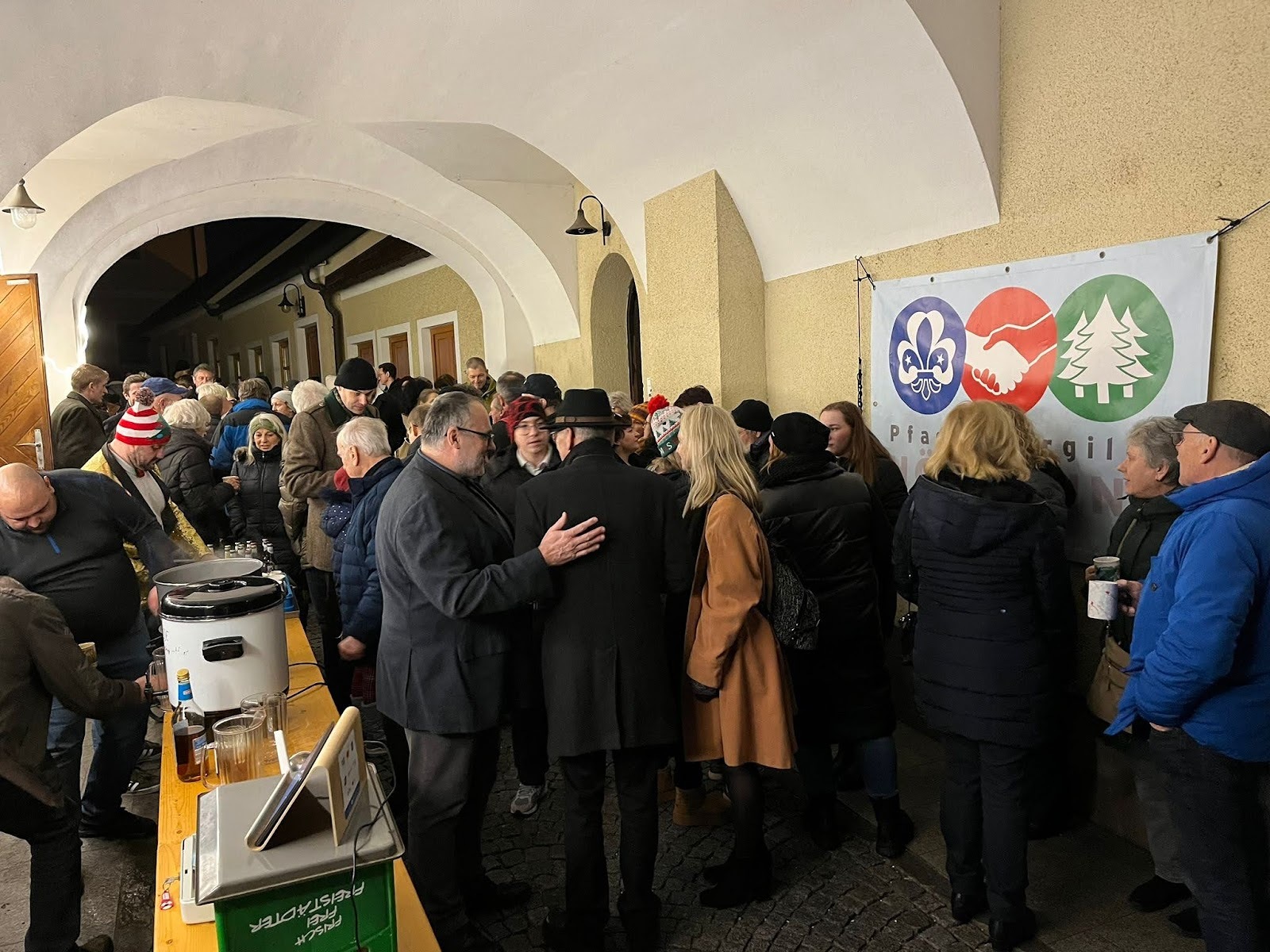 Nach der Christmette lud die Pfadfindergilde wieder zum traditionellen Punsch im Pfarrhof ein, wo weitergefeiert und nochmals die Gildekrippe bestaunt werden konnte.