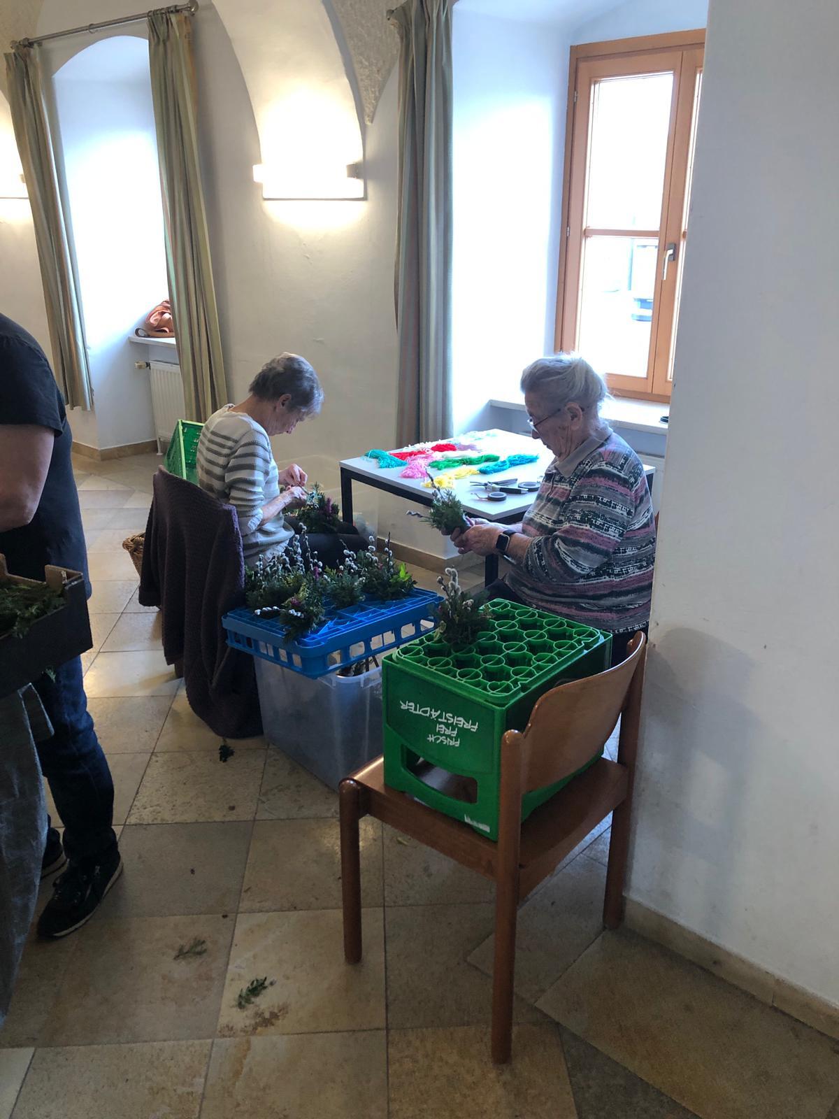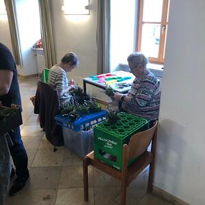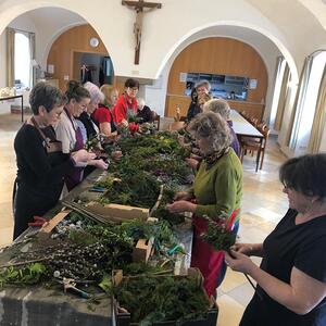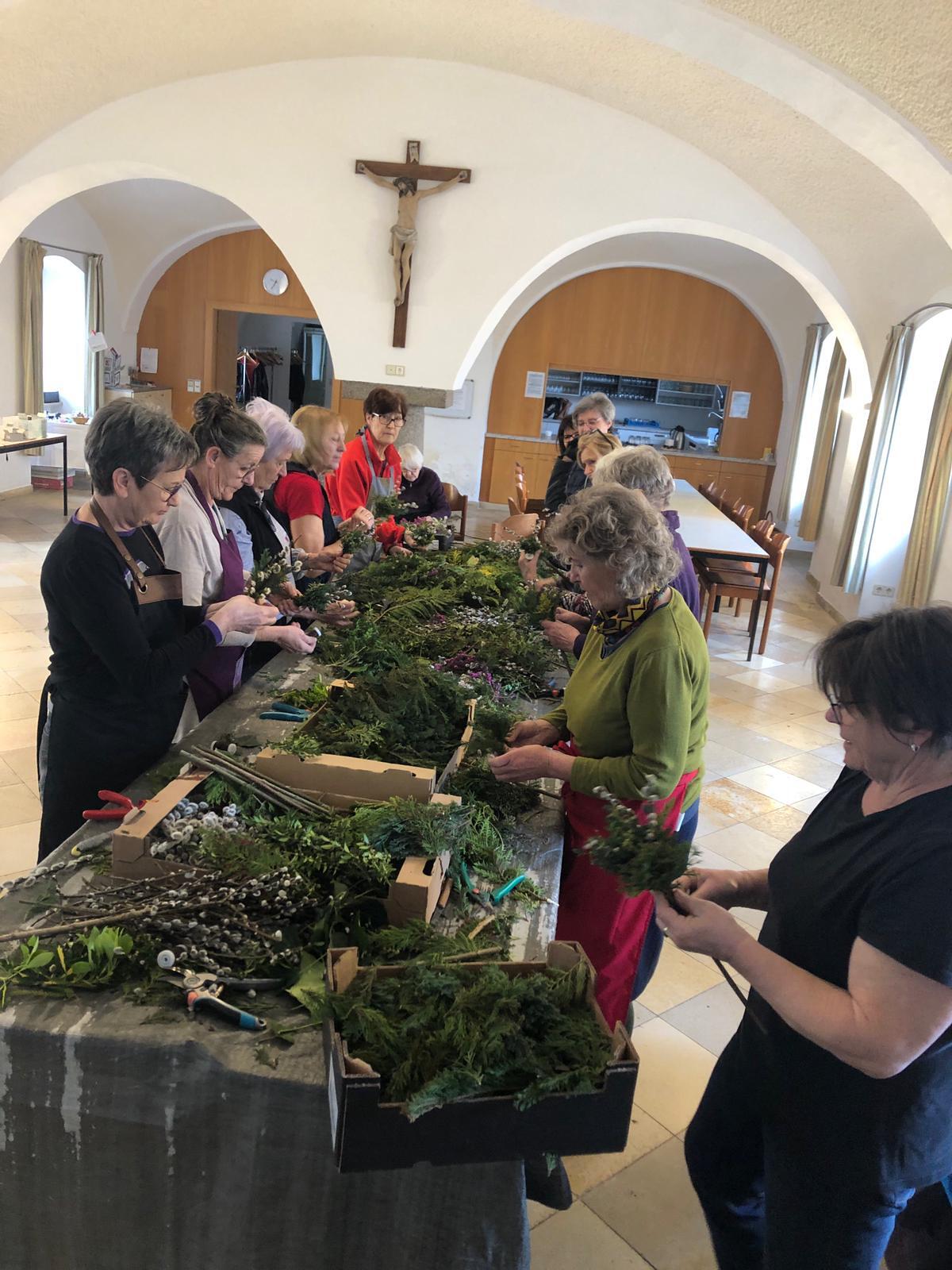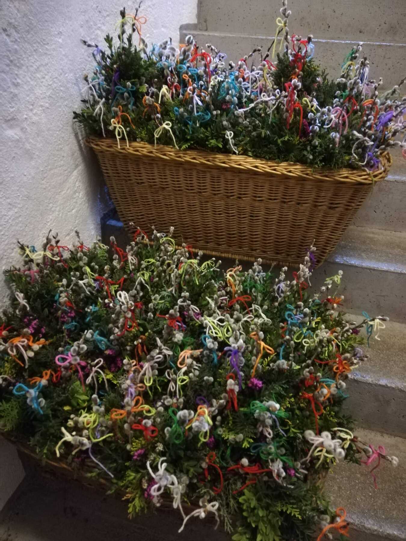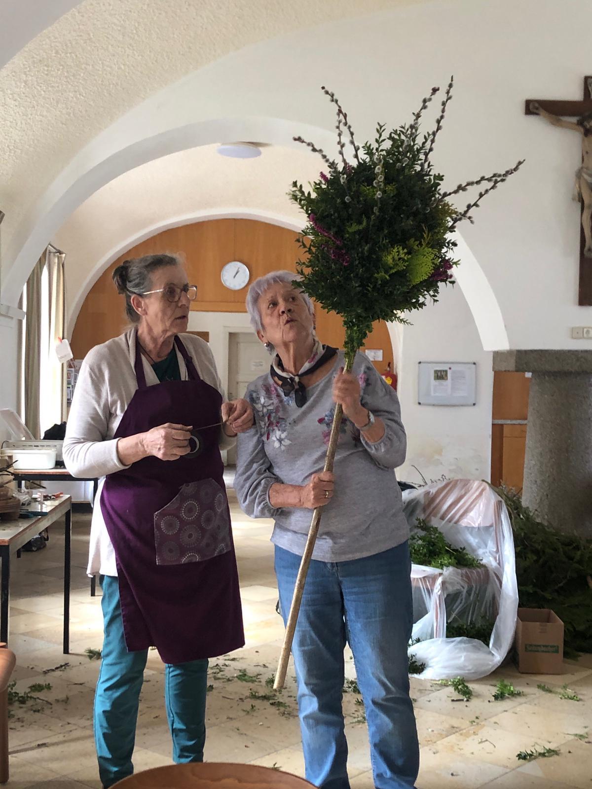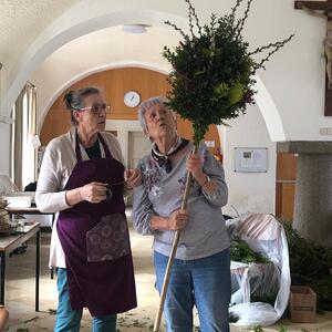 Die Palmbuschen werden bereits am Freitag im Gottesdienst gesegnet und können am Palmsonntag vor dem Gottesdienst erworben werden.