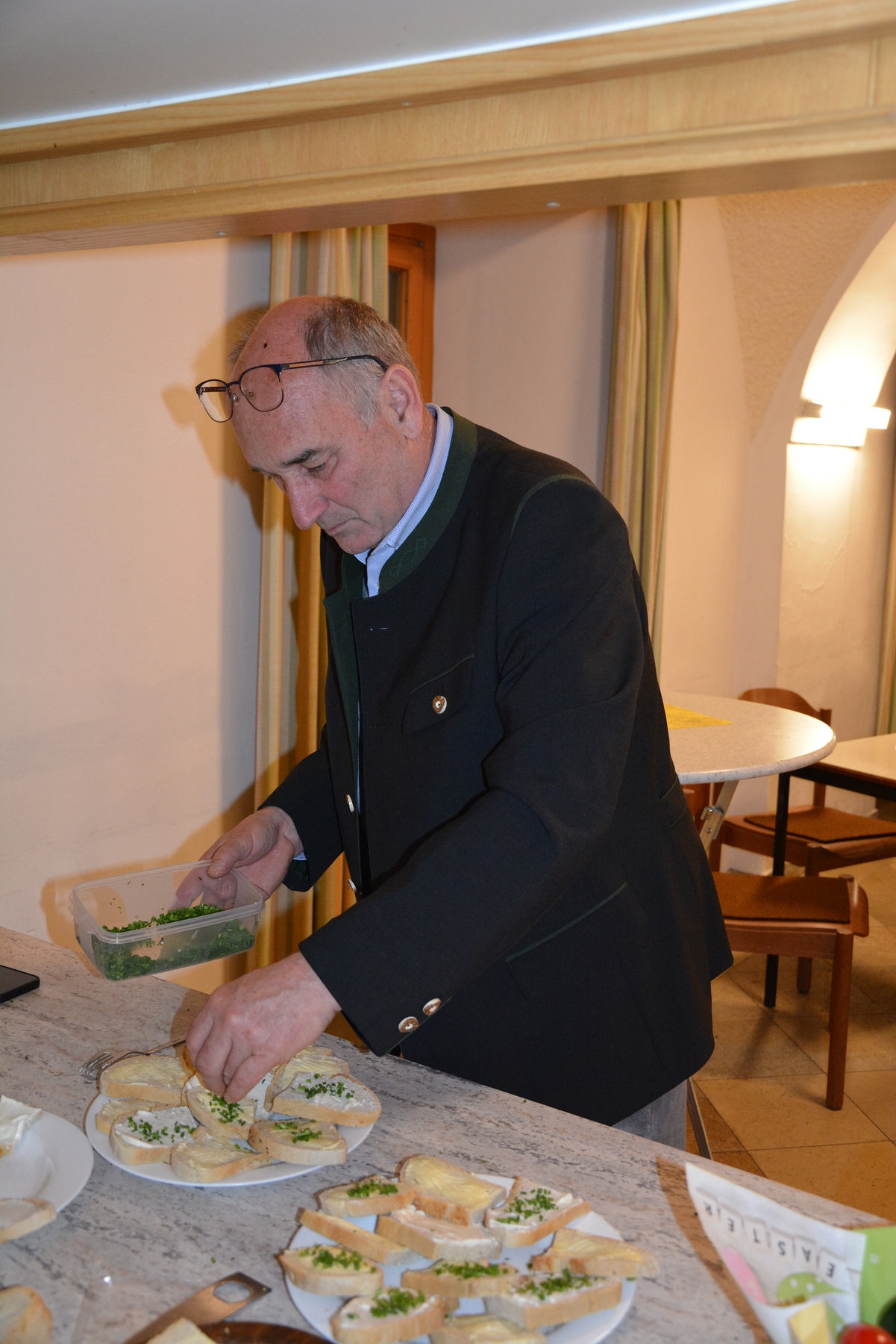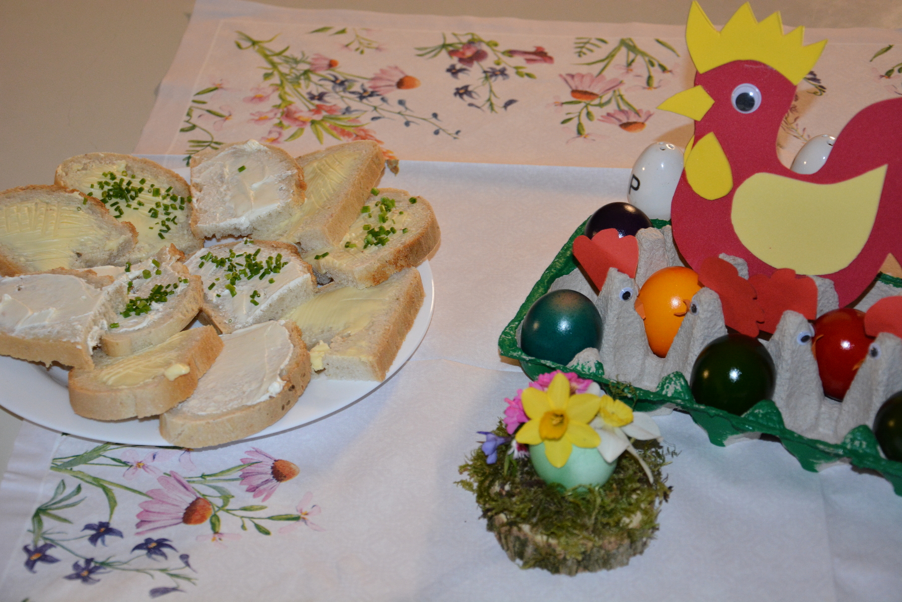 Im österlich dekorierten Pfarrsaal hat die Pfadfindergilde eine Osteragape vorbereitet, wo noch längere Zeit gefeiert und geplaudert wurde.
