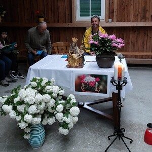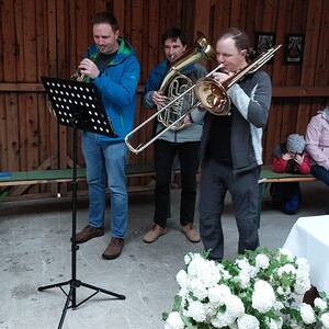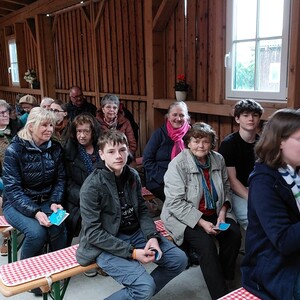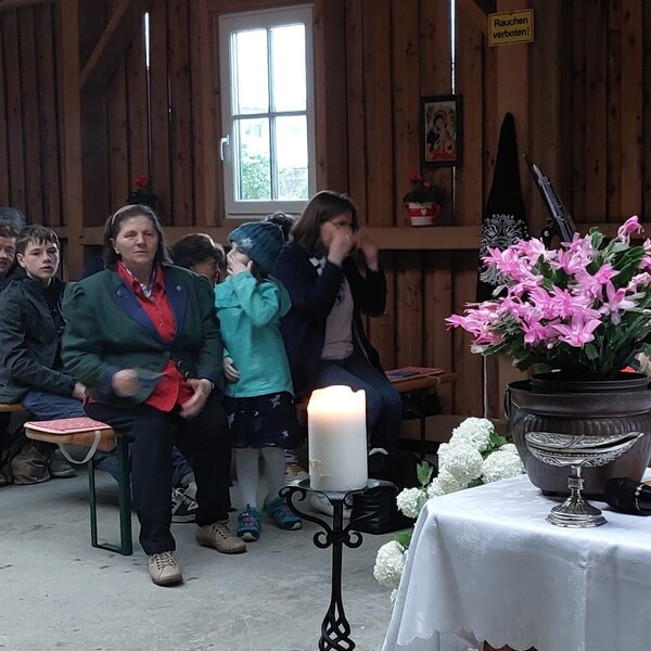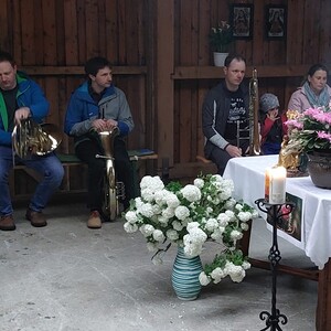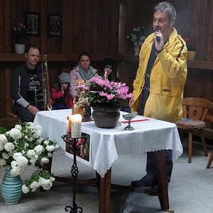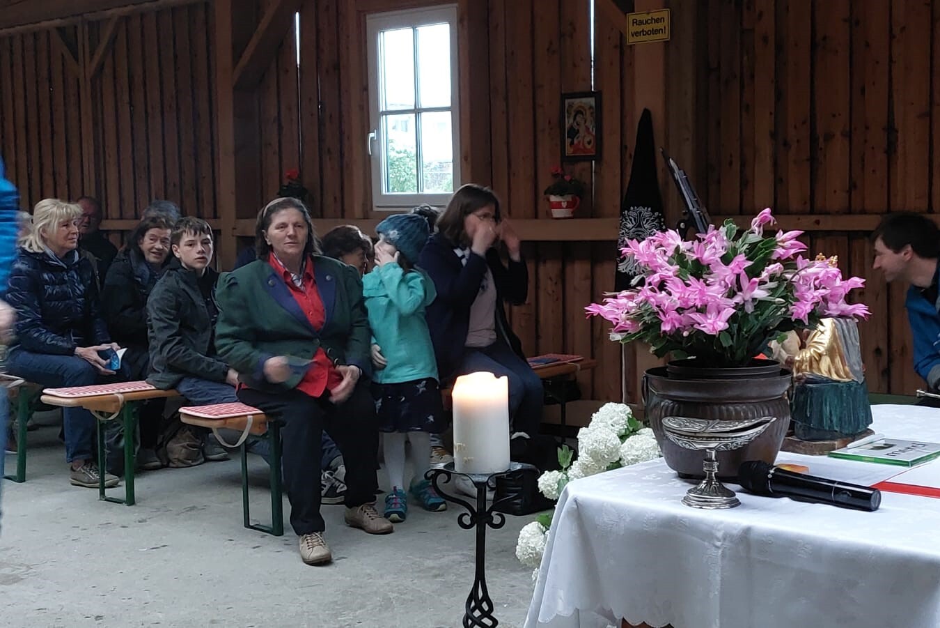 Familienangehörige lasen und musizierten, Nachbarn stimmten die Lieder an. Es war ein starkes Stück Maiandacht, die gewohnt gesellig bei Köstlichkeiten aus Küche und Keller ausklang. - Allen ein herzliches Danke, besonders Gastgeber Hans und der Gastgeberin Hermi.