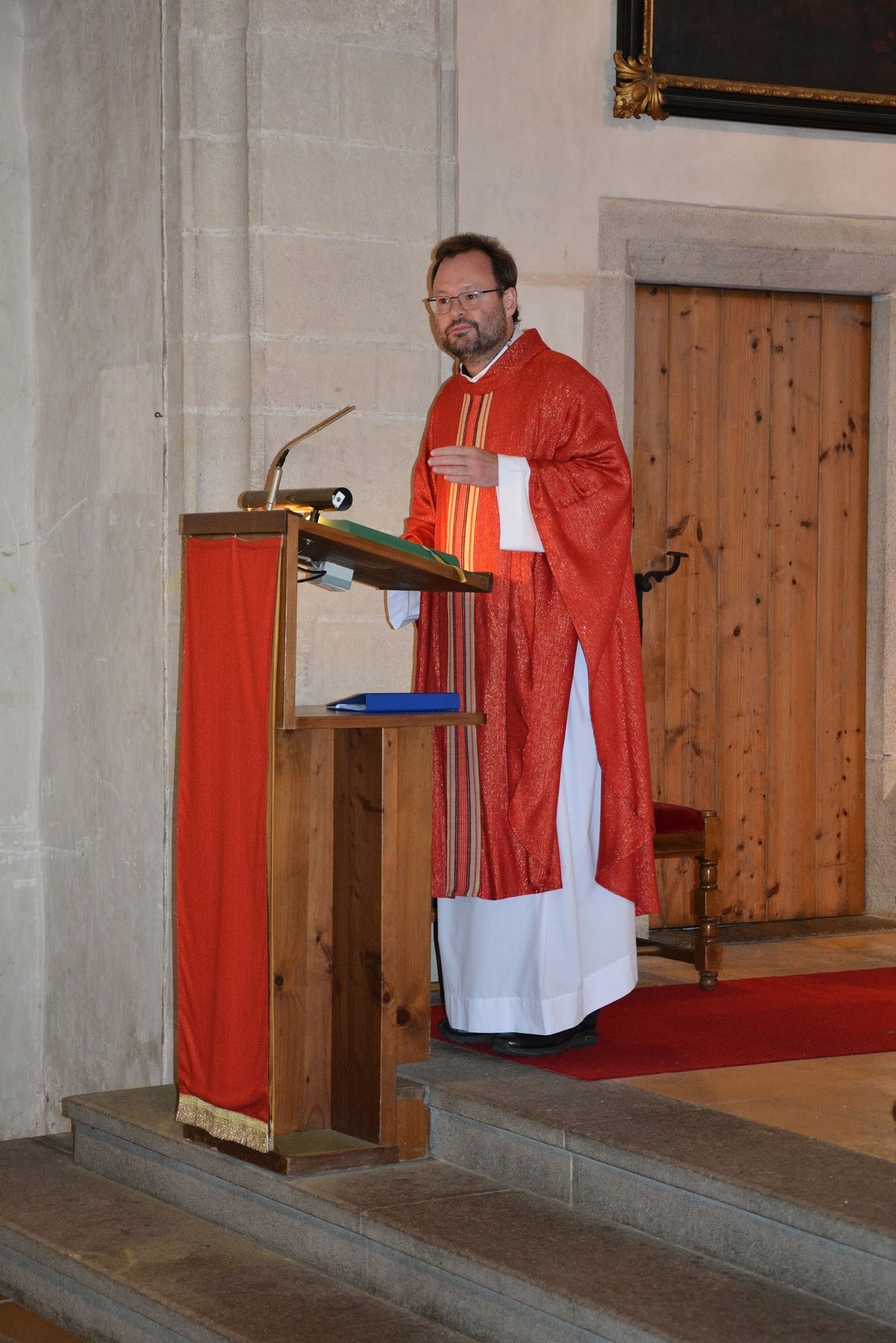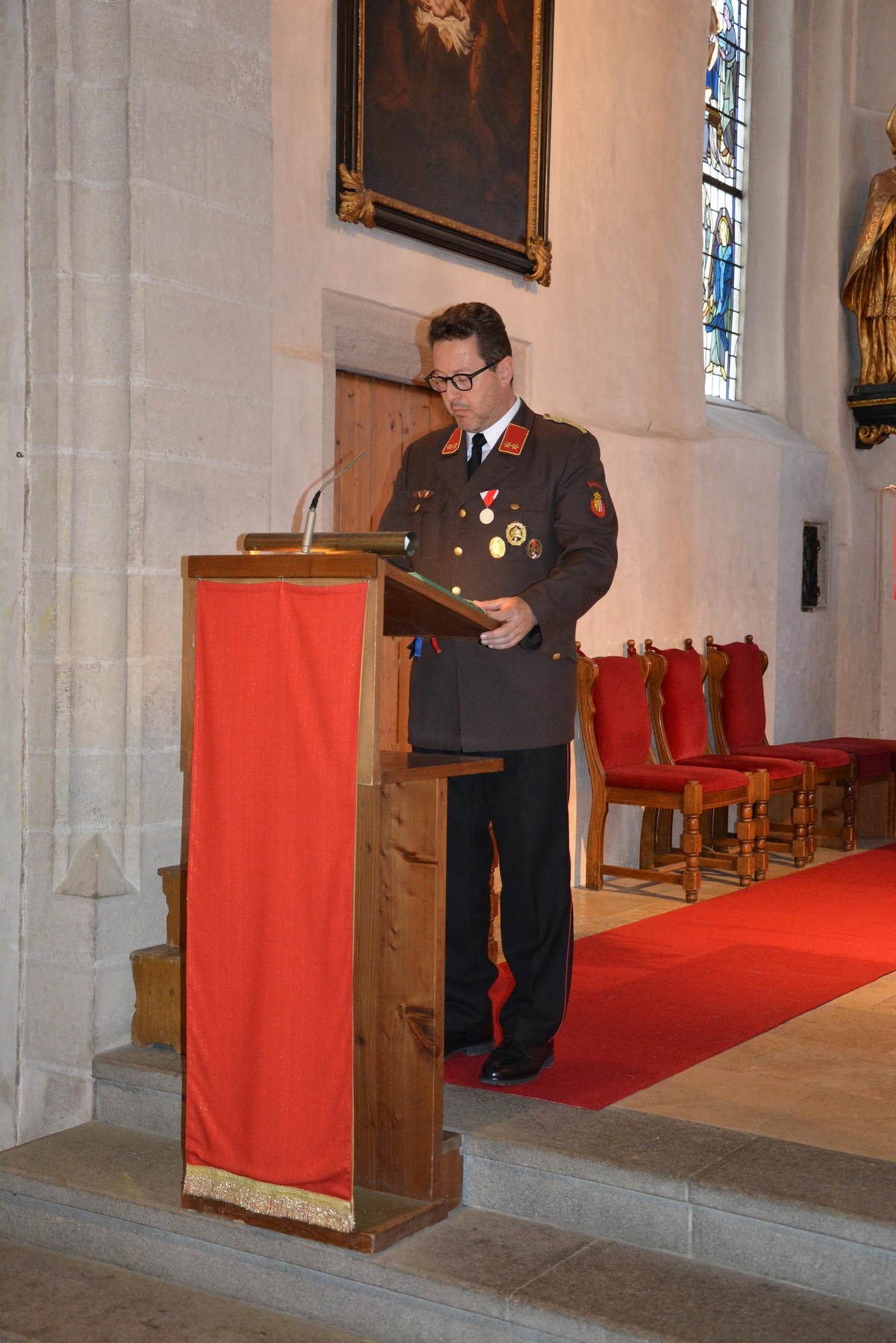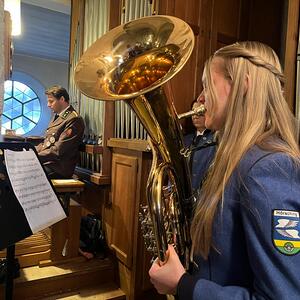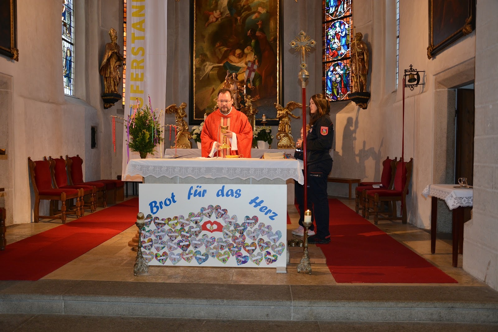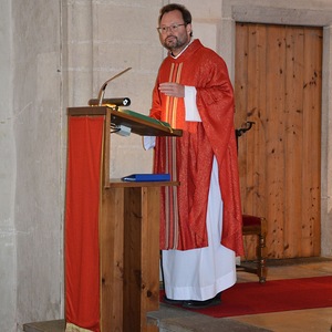 Kaplan Peter Ramsebner zelebrierte die Messe, der Nachwuchs der Feuerwehren formulierte und verlas die Fürbitten. Unser Organist, Michael Windner, selbst Feuerwehrmitglied kam ins Schwitzen: Neben dem Orgelspiel programmierte er die Nummern für die Liederanzeige und dirigierte erstmals den Musikverein mit ganzem Körpereinsatz, da Kapellmeister Helmut Schmitz und sein Stellvertreter Horst Salamonsberger beide verhindert waren. Vielen Dank!