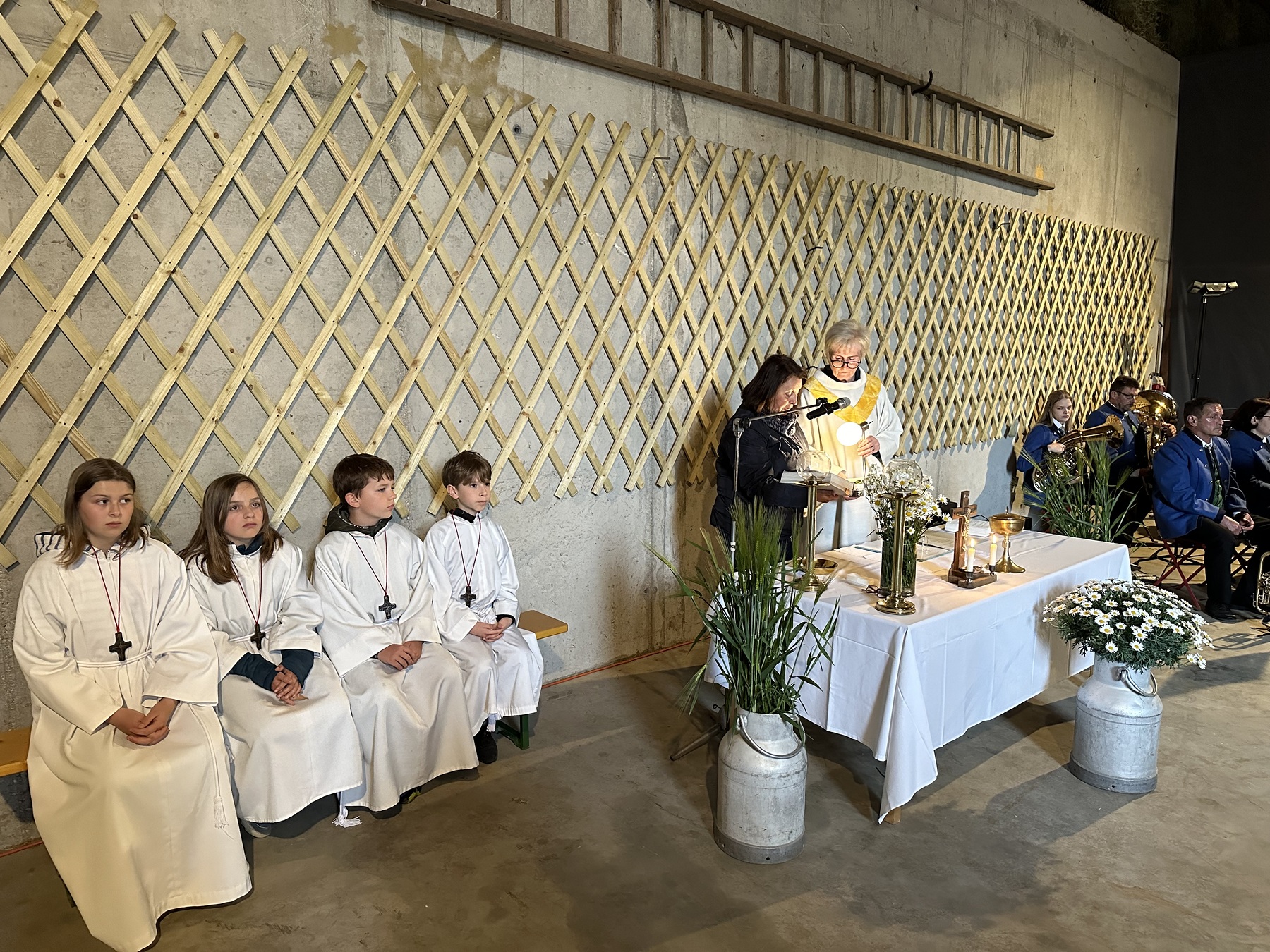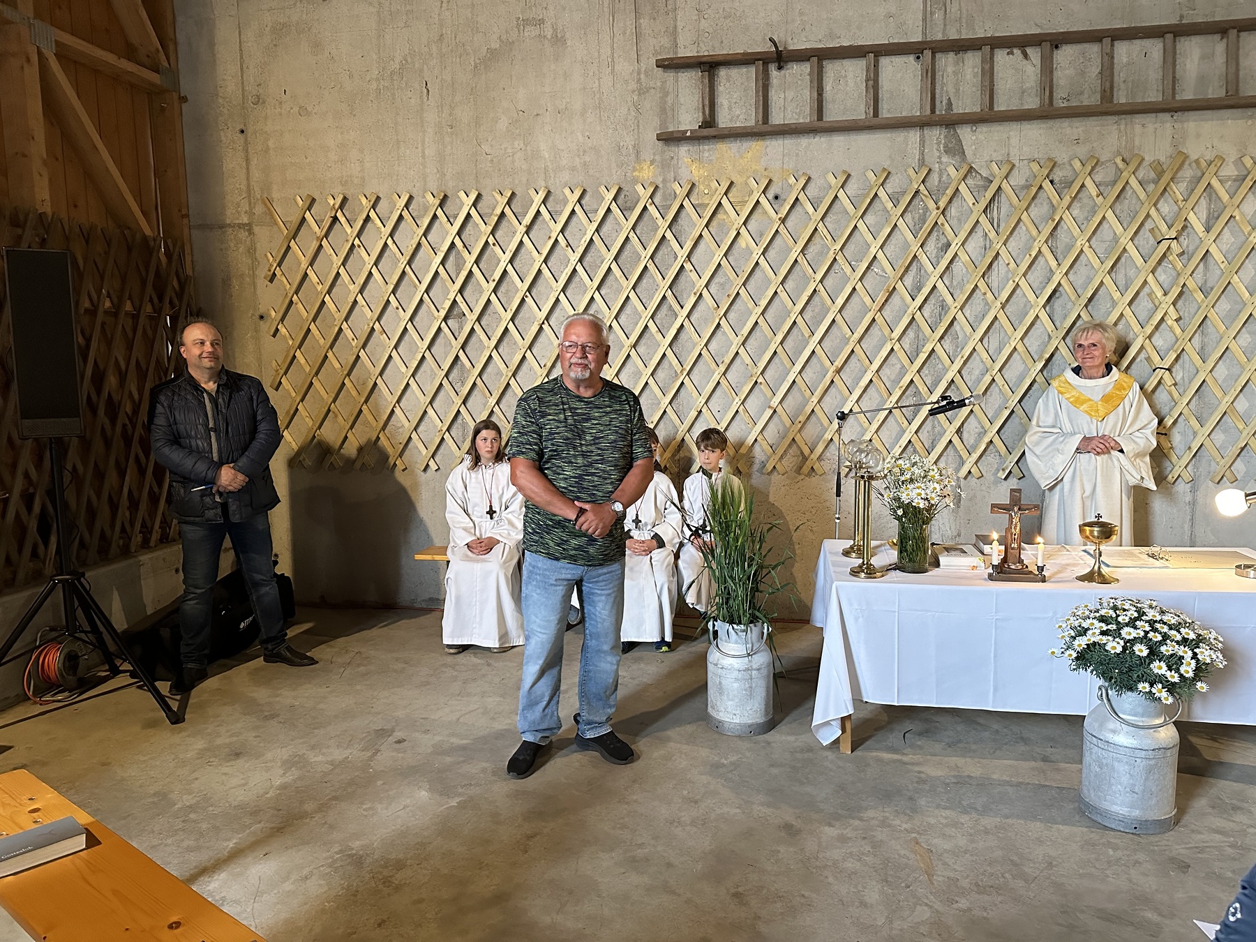 Familie Eder hat den Altar wunderschön dekoriert und anschließend alle Besucher:innen noch zu leckeren belegten Brötchen, Apfelsaft und Most eingeladen. Herzlichen Dank!