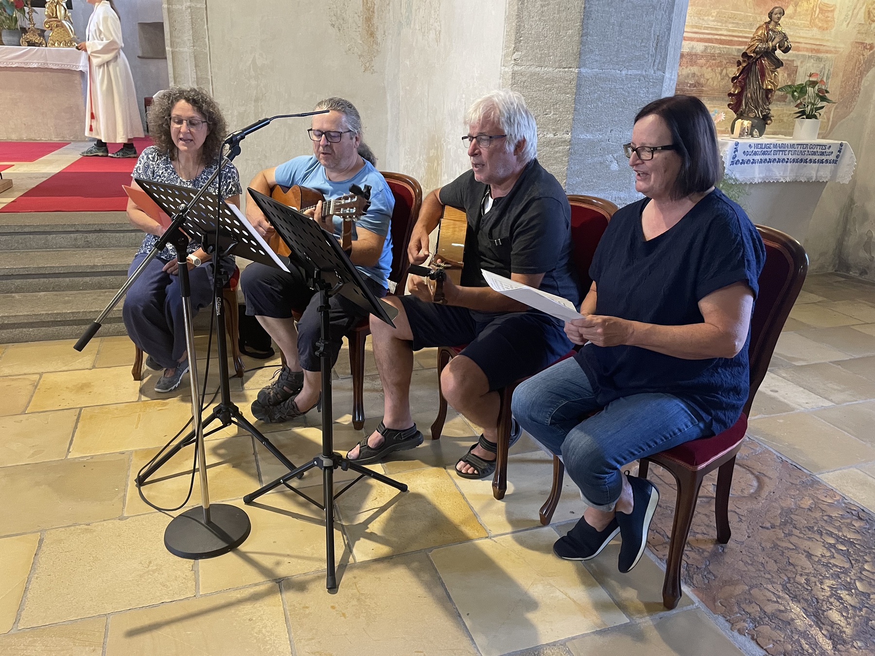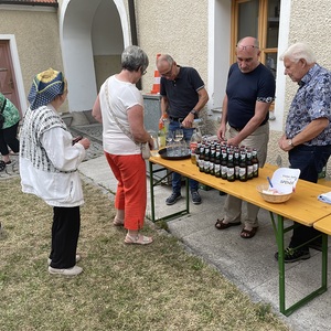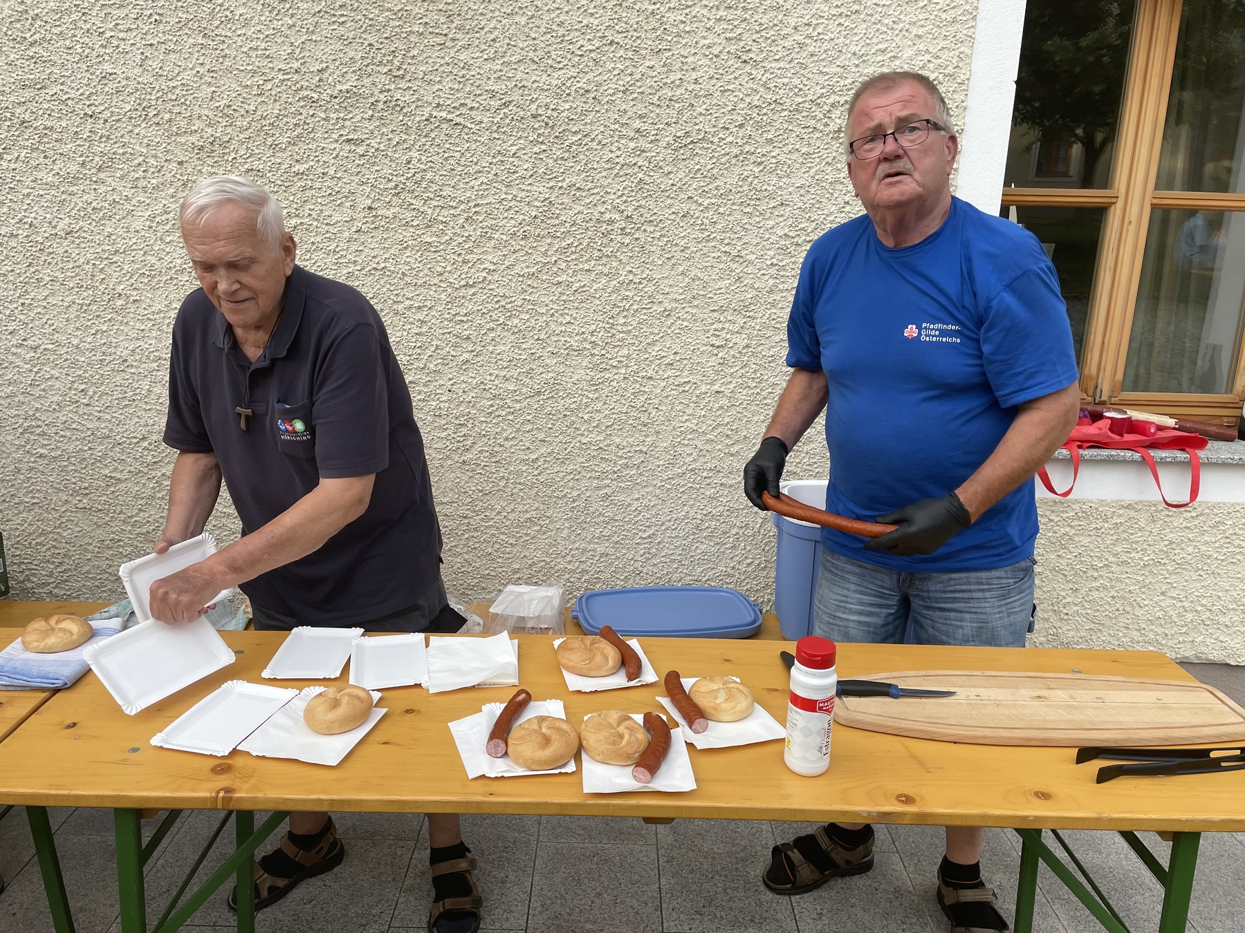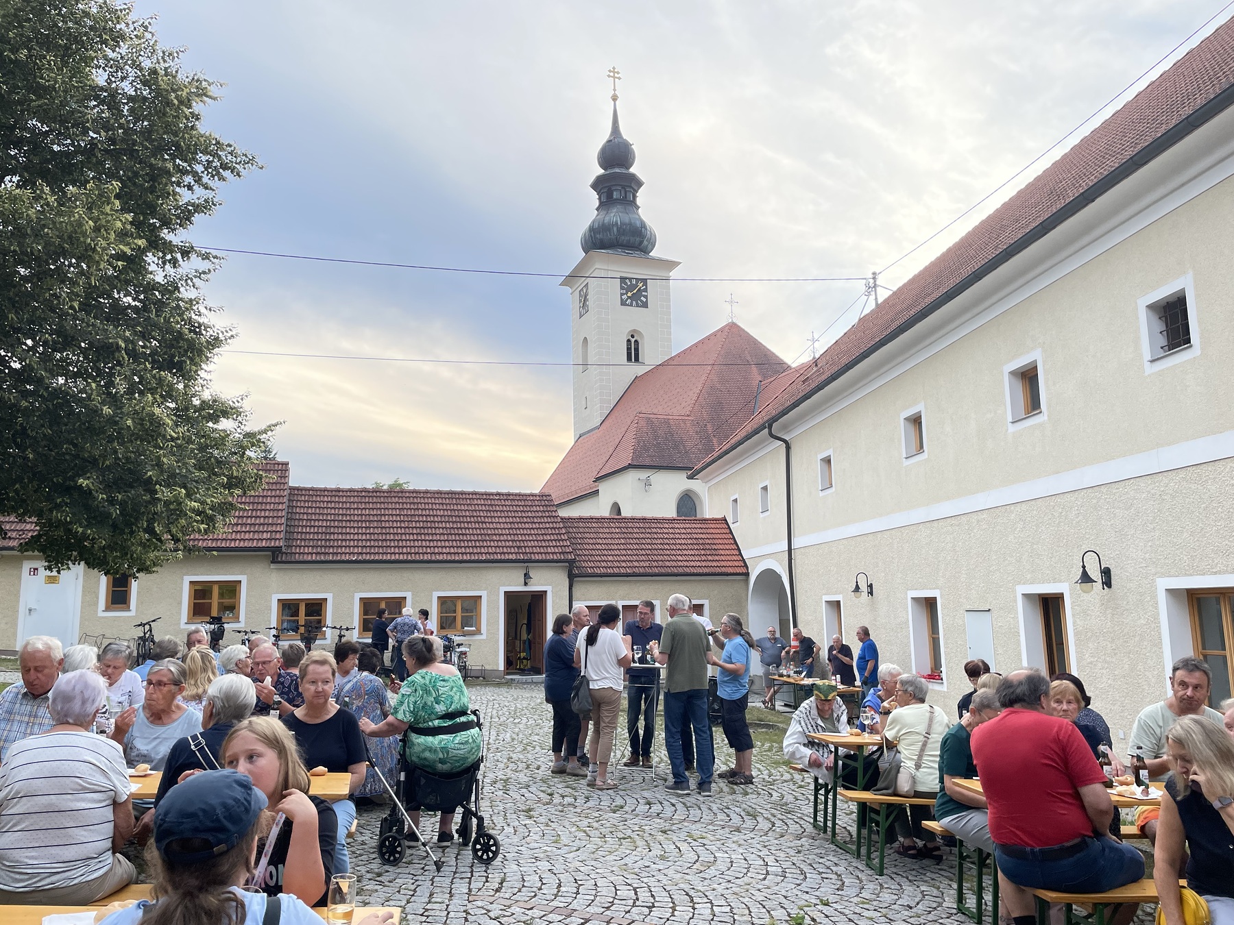 In den verschiedenen Ortsteilen haben sich die Pilger:innen getroffen und sind dann gemeinsam zur Kirche gepilgert. Im Anschluss an den Gottesdienst gab es die traditionelle Pilgerjause (Wurst, Semmerl und Bier), die dankenswerterweise von der Pfadfindergilde vorbereitet wurde. Diesen lauen Sommerabend haben wir noch bei netten Gesprächen im Pfarrinnenhof ausklingen lassen.