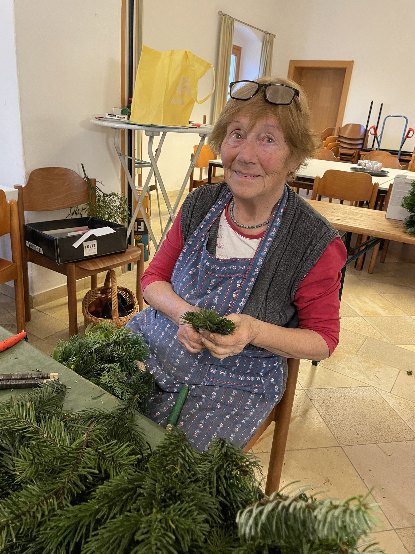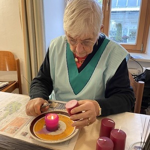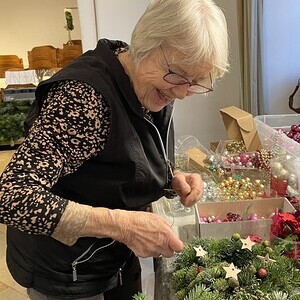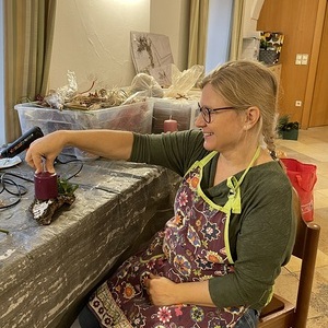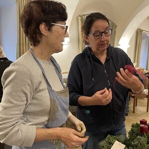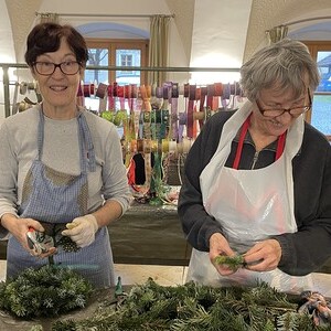 Jede konnte sich unterschiedlich einbringen: Astl schneiden, binden, dekorieren, Kerzen bedrahteln, kochen (alle freuen sich zu Mittag, dass sie mit leckerem Essen und am Nachmittag mit Kaffee und Kuchen versorgt werden), ....