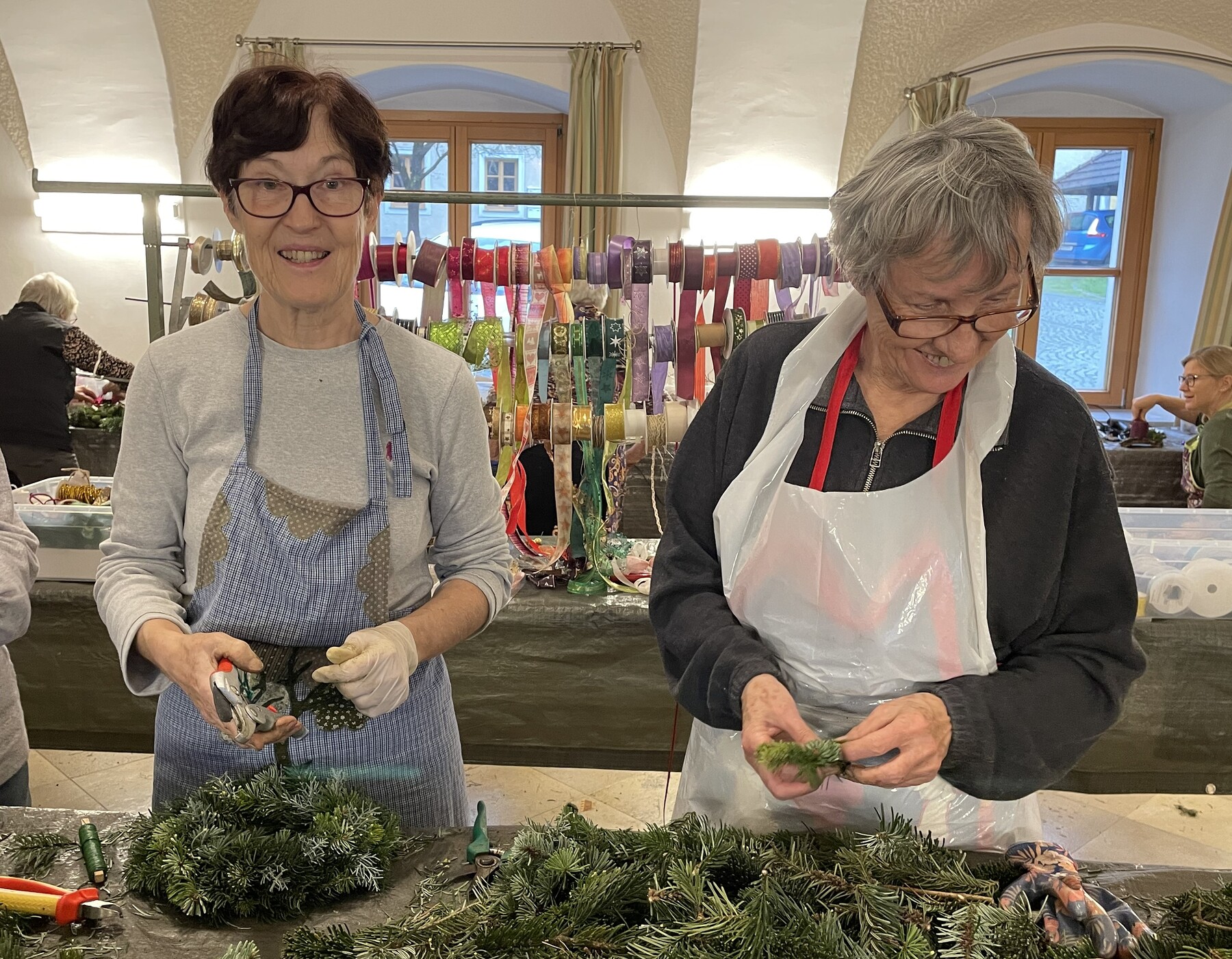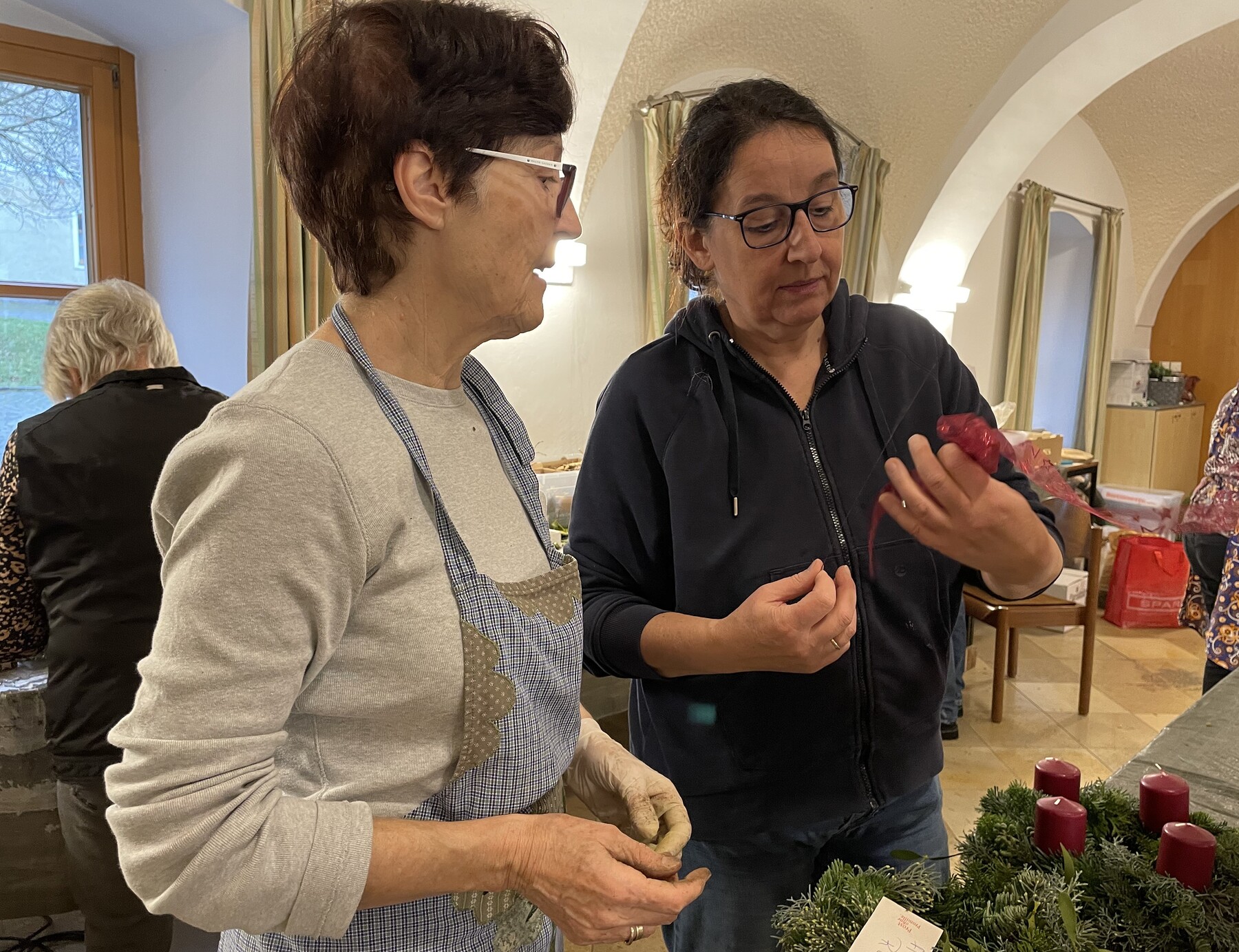 Manche kamen vorbei, um sich einen eigenen Kranz zu binden und zu dekorieren, oder einfach zuzusehen und sich Ideen zu holen.