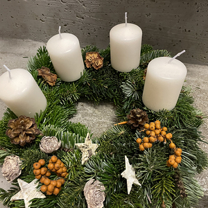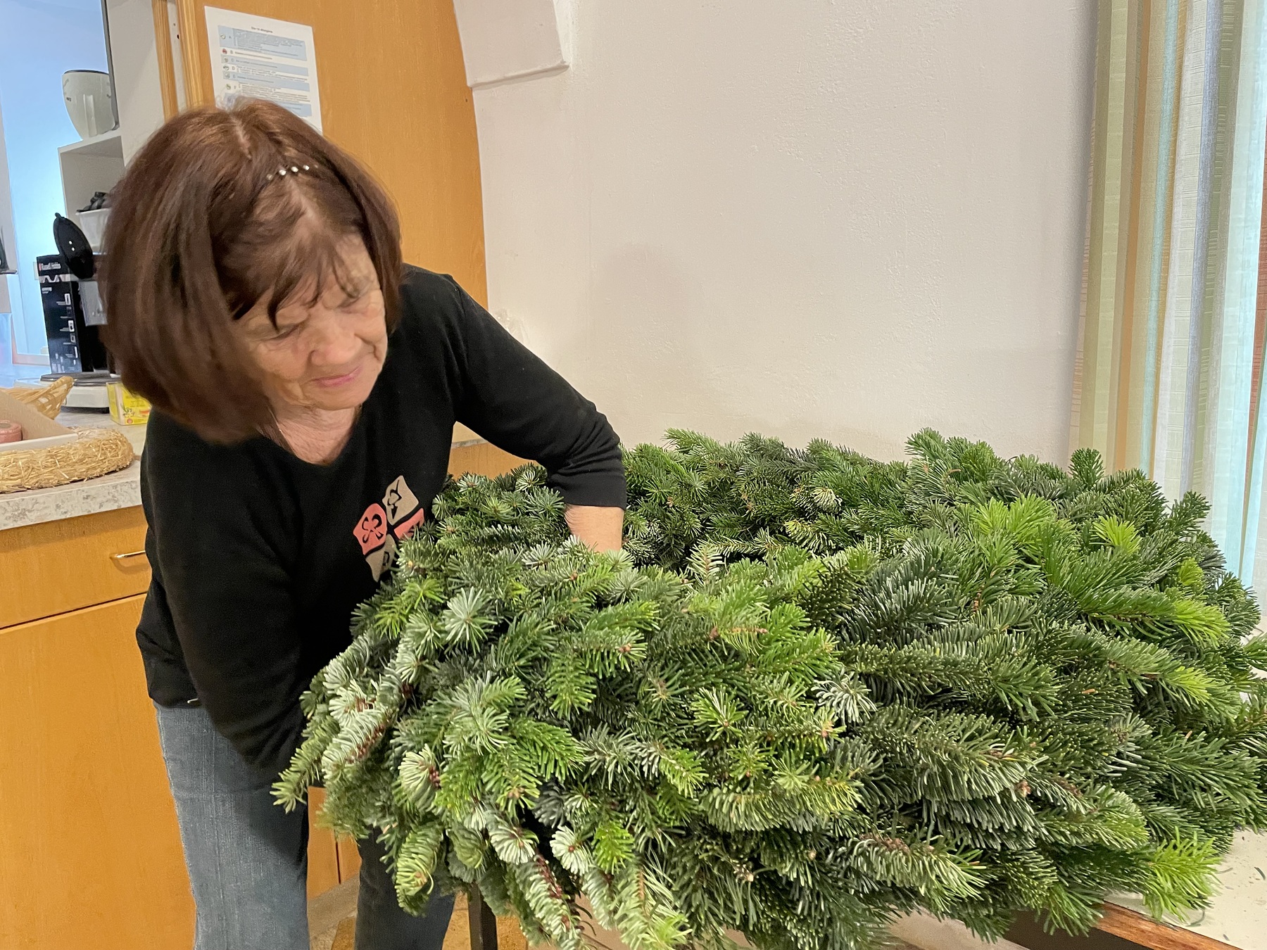 Eine große Herausforderung ist immer der riesige Adventkranz für die Kirche.