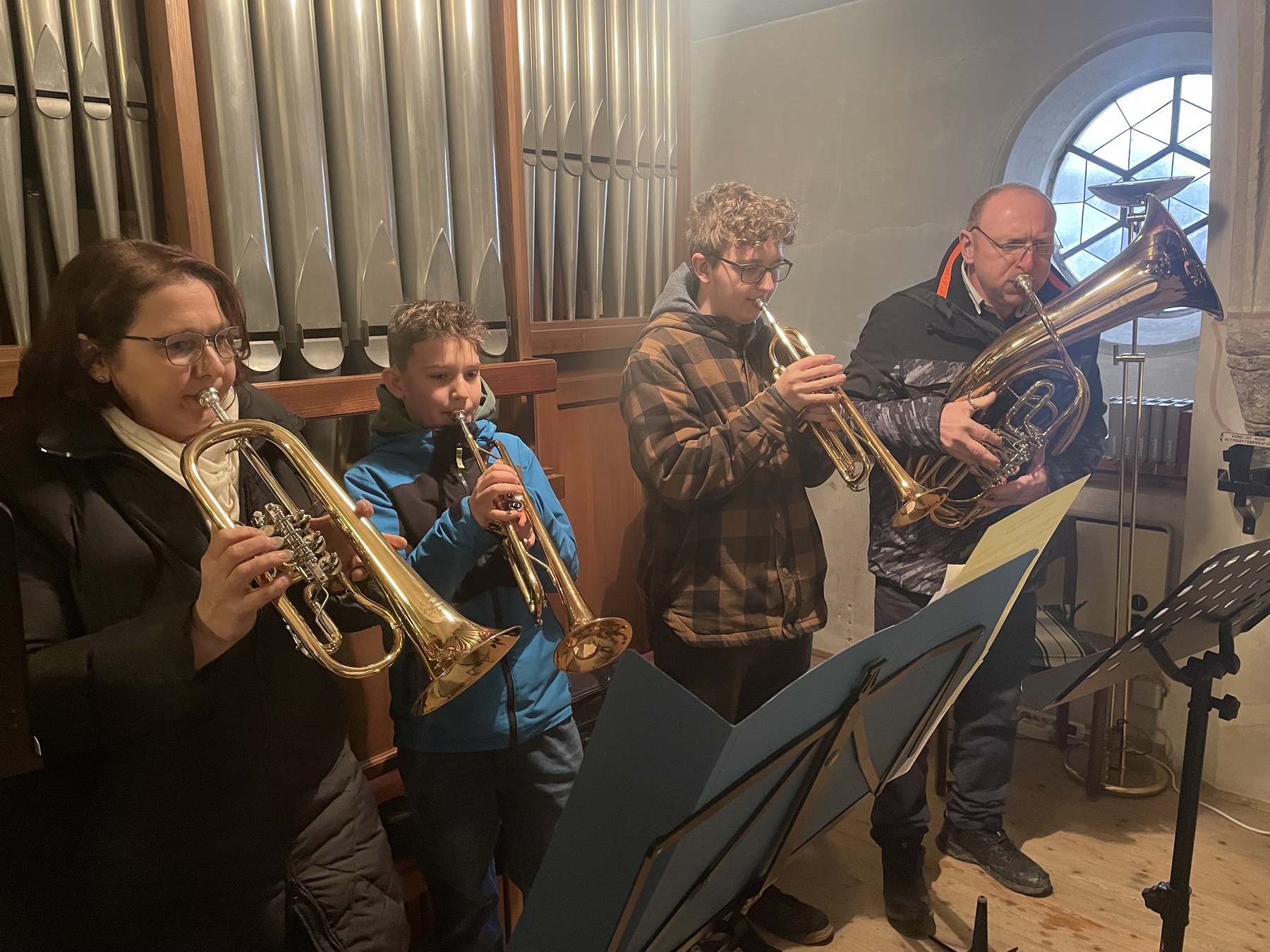 Musikalisch umrahmt wurde die Messe von jungen Bläser:innen des Musikvereins, unter der Leitung von Bettina Buschmüller. Sie waren mit den zahlreichen Liedern ziemlich gefordert, haben sich erst vor vier Wochen erstmals zum gemeinsamen Proben getroffen.