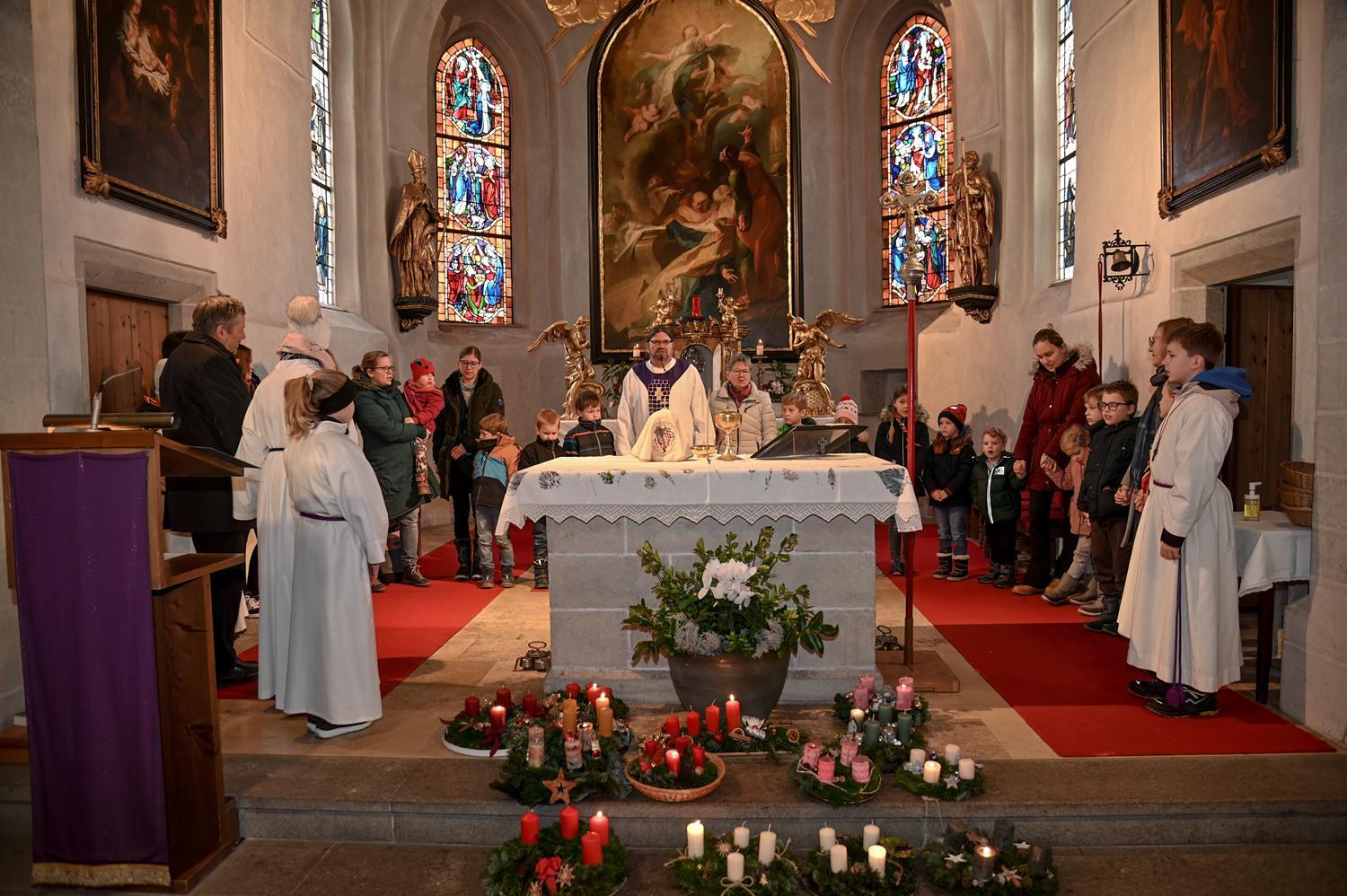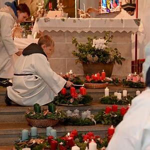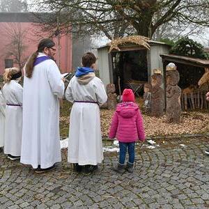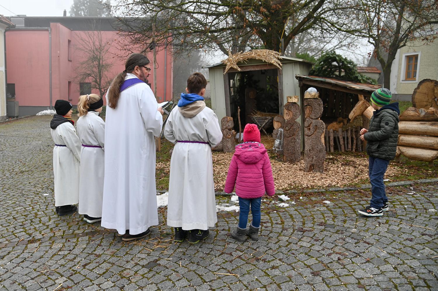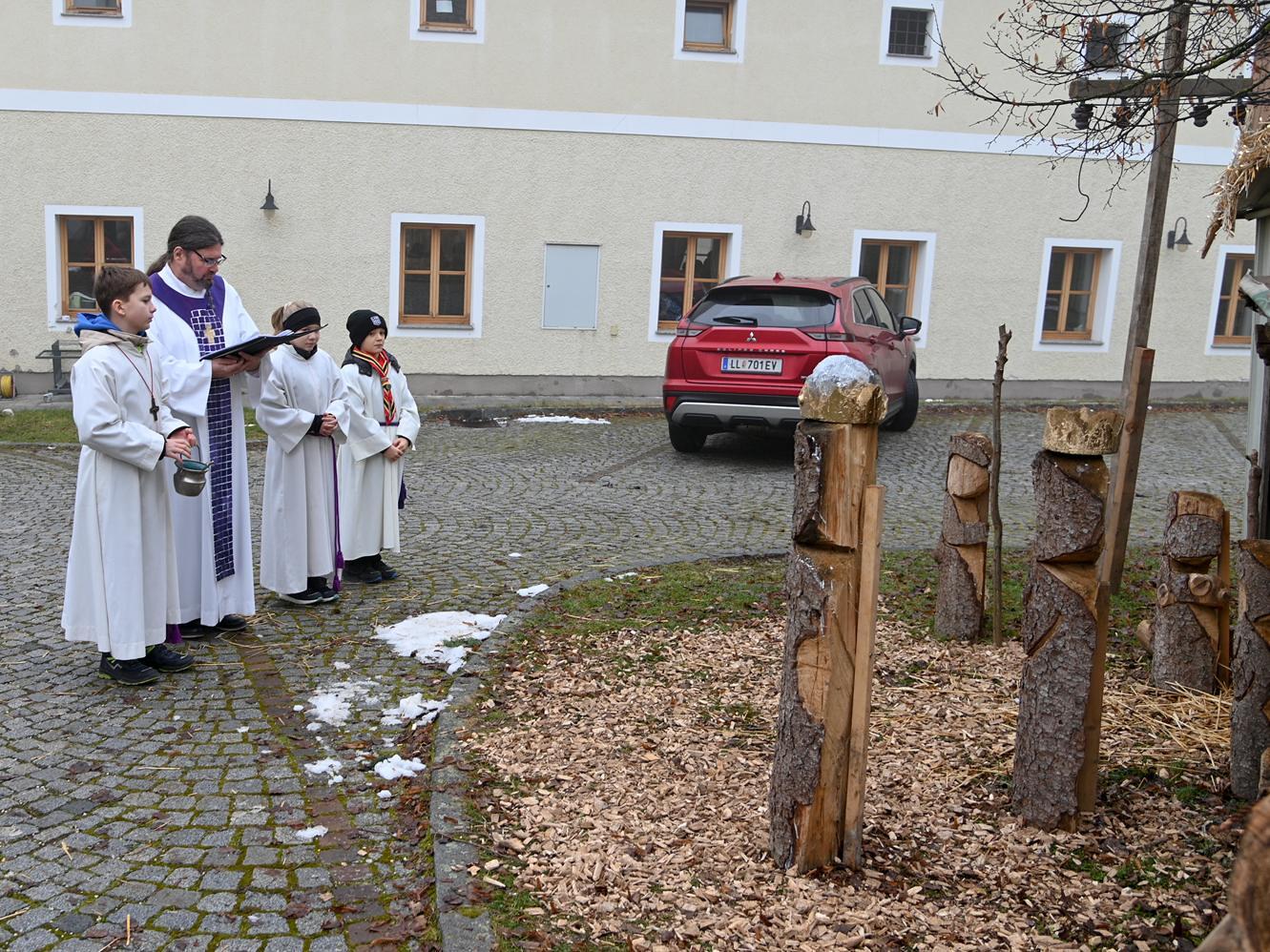 Im Anschluss an unseren Gottesdienst segneten wir auch die Gildekrippe im Pfarrhof und deckten uns beim Weihnachtsbasar der Pfadfinder:innen mit allerlei selbstgebastelten Geschenken ein.