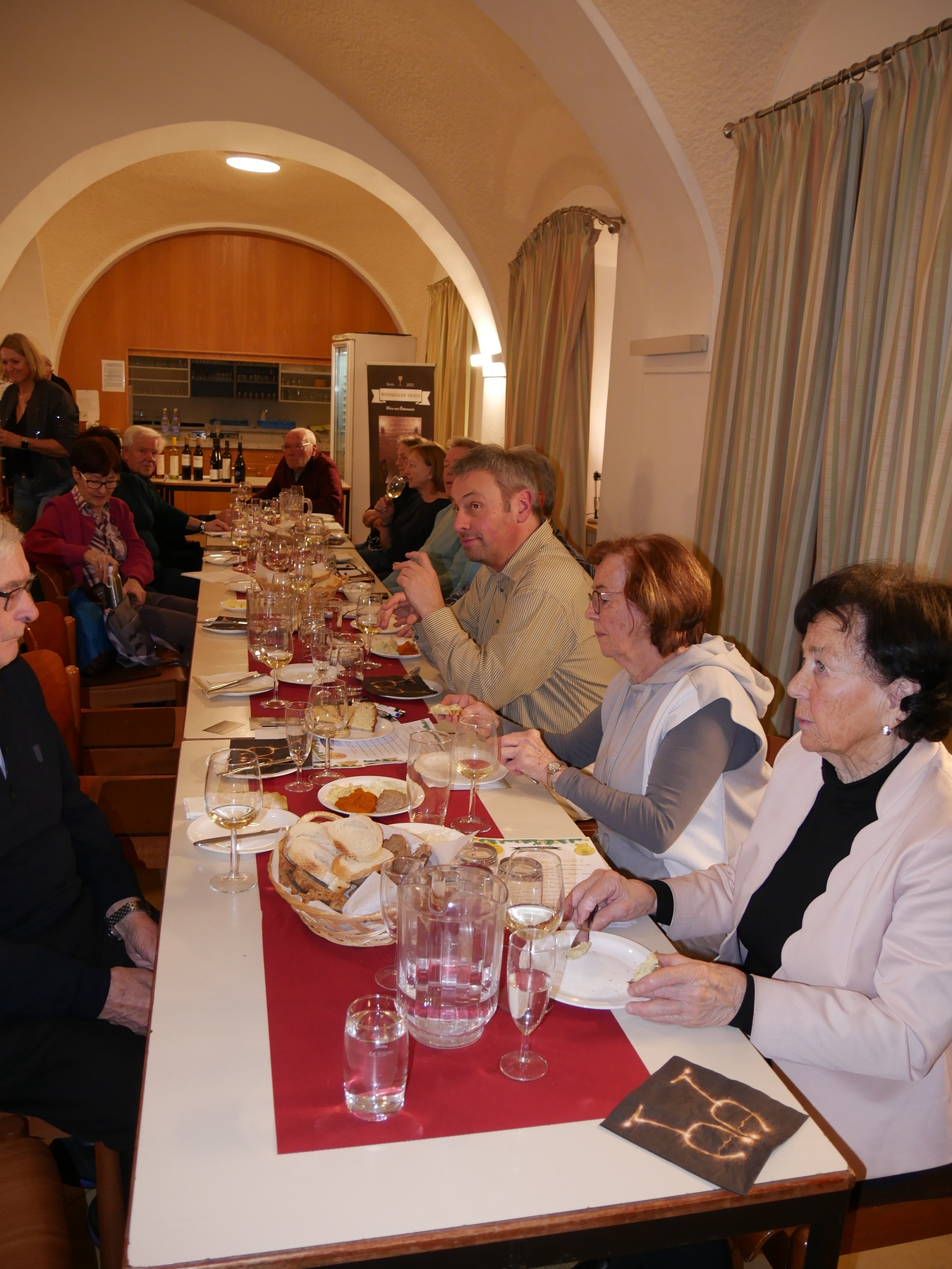 Der Weinkeller Traun hat österreichische Weine zum Verkosten mitgebracht. Dazu haben einige Engagierte unserer Pfarrgemeinde den Pfarrsaal festlich gedeckt und für leckere Aufstriche und Brote gesorgt.