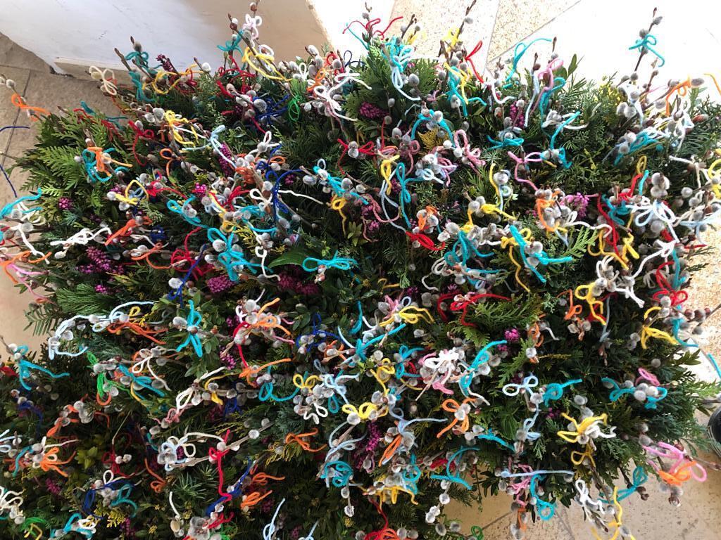 Zwei Tage lang haben einige kfb-Damen unzählige Palmbuschen im Pfarrsaal gebunden. Dank vieler unterschiedlicher Materialspenden sind wieder viele wunderschöne Palmbuschen entstanden, die am Wochenende zum Kauf angeboten werden.