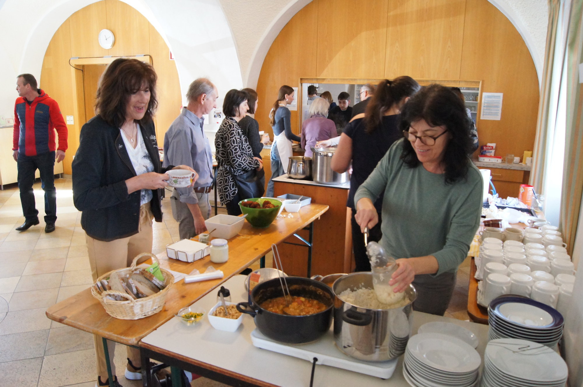 Am Suppensonntag, welcher wiederum vom Team Partnerschaften weltweit organisiert und durchgeführt wurde, besuchten uns heuer die Generaloberin der Marienschwestern Sr. M. Michaela Pfeiffer-Vogl und die vor knapp zwei Wochen in Österreich eingetroffene ugandische Mitschwester Sr. Olivia. Sie wird in den nächsten Wochen im Mutterkloster in Bad Mühllacken ihre Fertigkeiten im Nähen vertiefen.