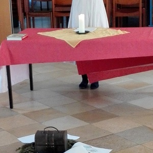 Um genügend Platz und Abstand zu haben fand der Kindergottesdienst im Pfarrsaal statt.