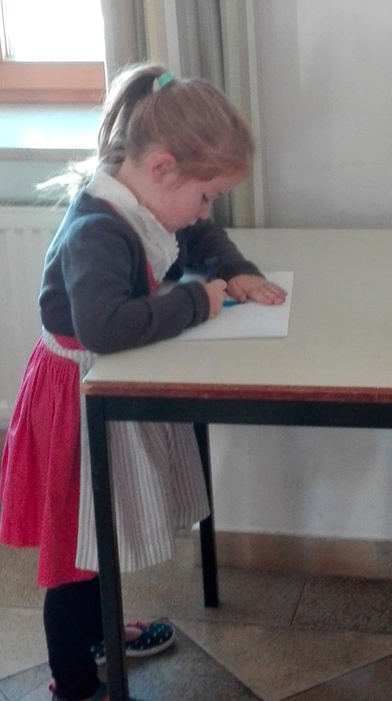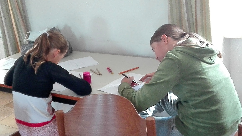 Anschließend bemalten sie eine Schatzkiste mit ihren wichtigsten Schätzen. Nach dem Evangelium malten sie noch Gott dazu, so wie jedes Kind sich Gott vorstellt.