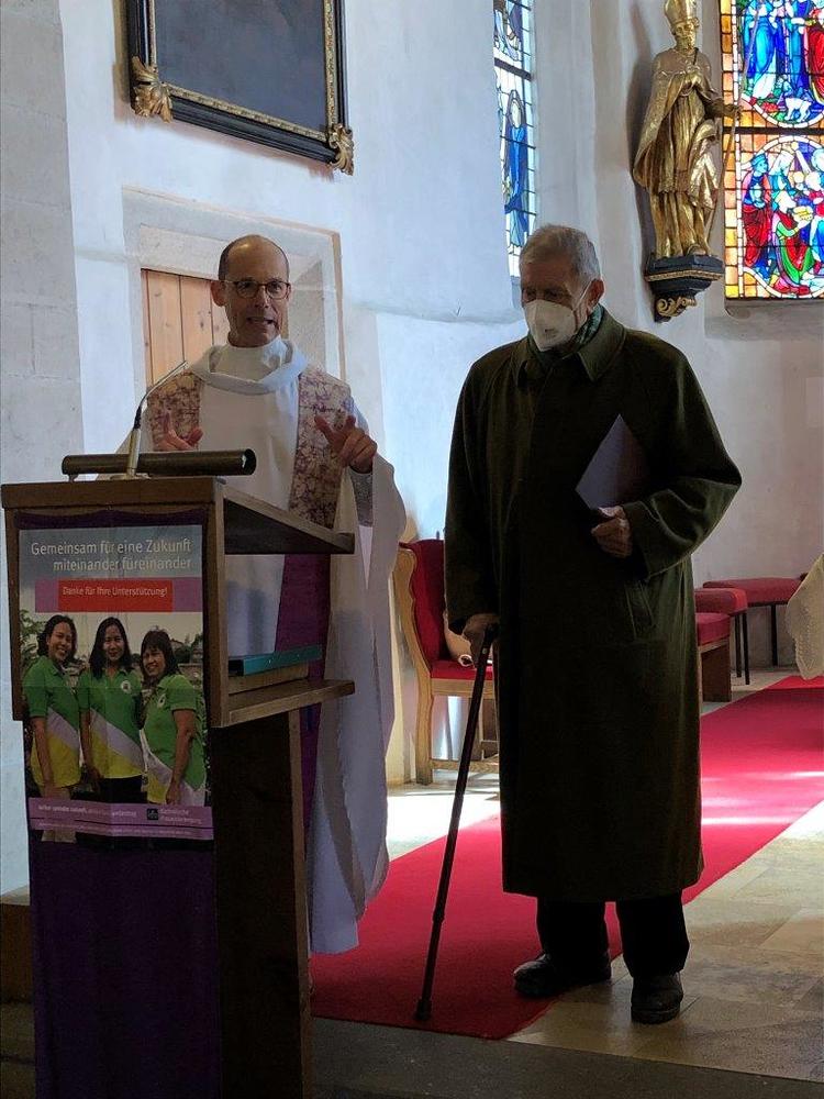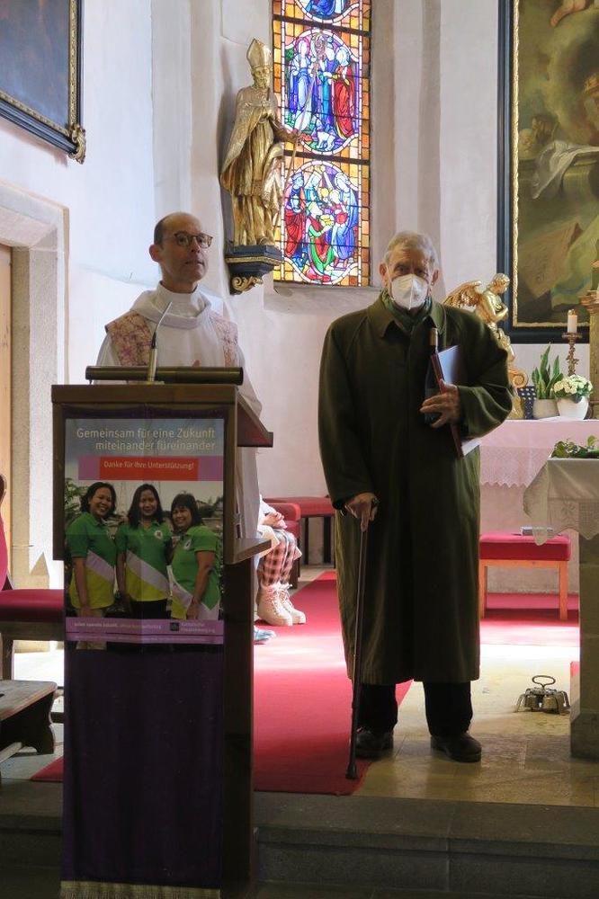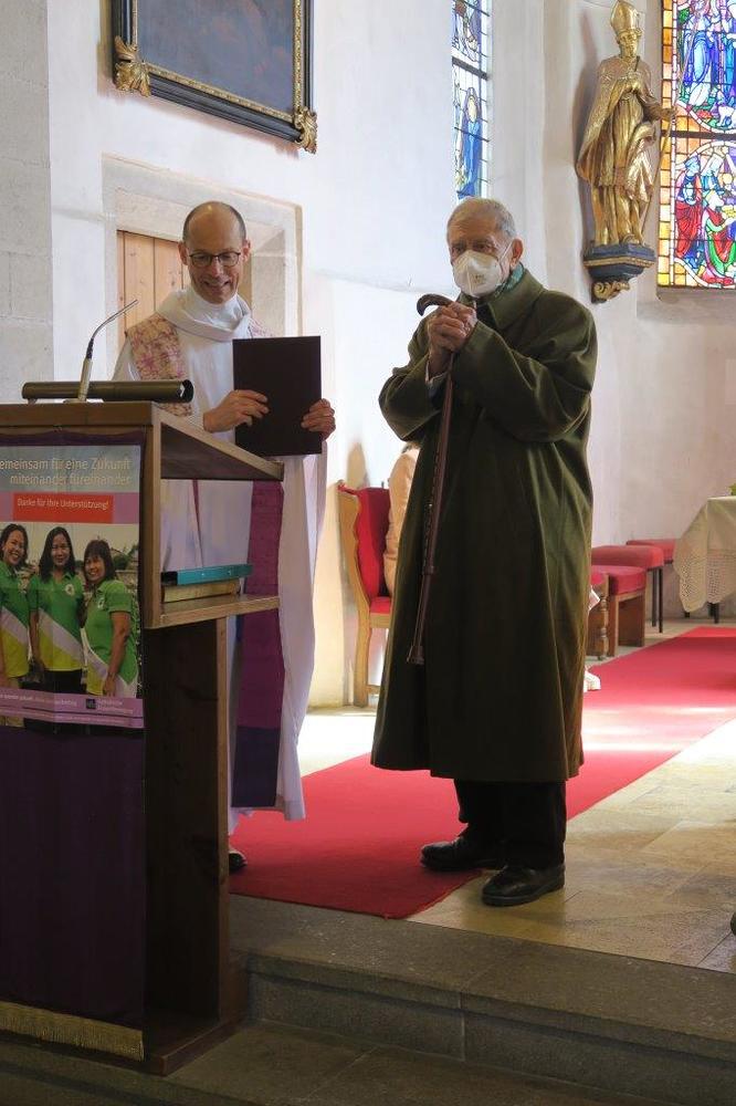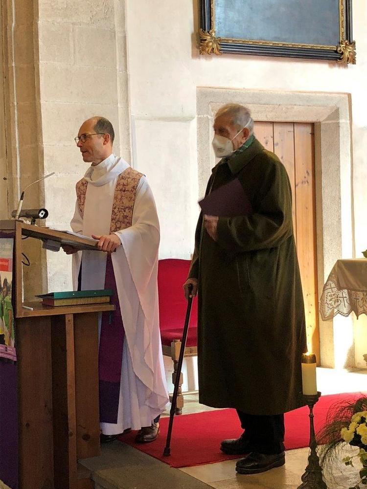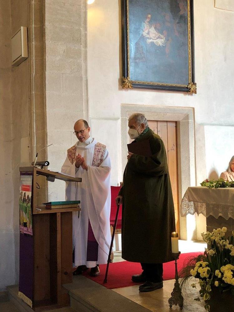 Prof. Luis Wagenhofer feierte seinen runden Geburtstag. Gratulation seitens der Pfarre, eine Urkunde der Diözese Linz und eine kleiner Aufmerksamkeit überbrachte Pfarrmoderator Andreas Altrichter beim Sonntagsgottesdienst. Anschließend organisierte die Pfadfindergilde eine Agape im Pfarrsaal zu Ehren des langjährigen Organisten.