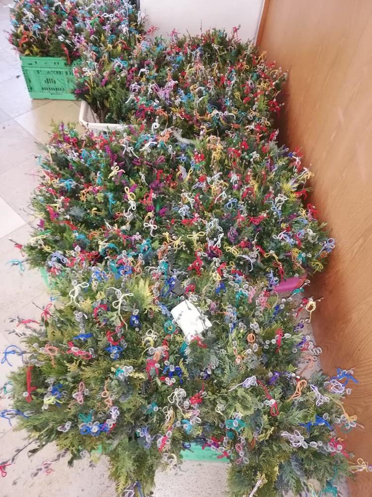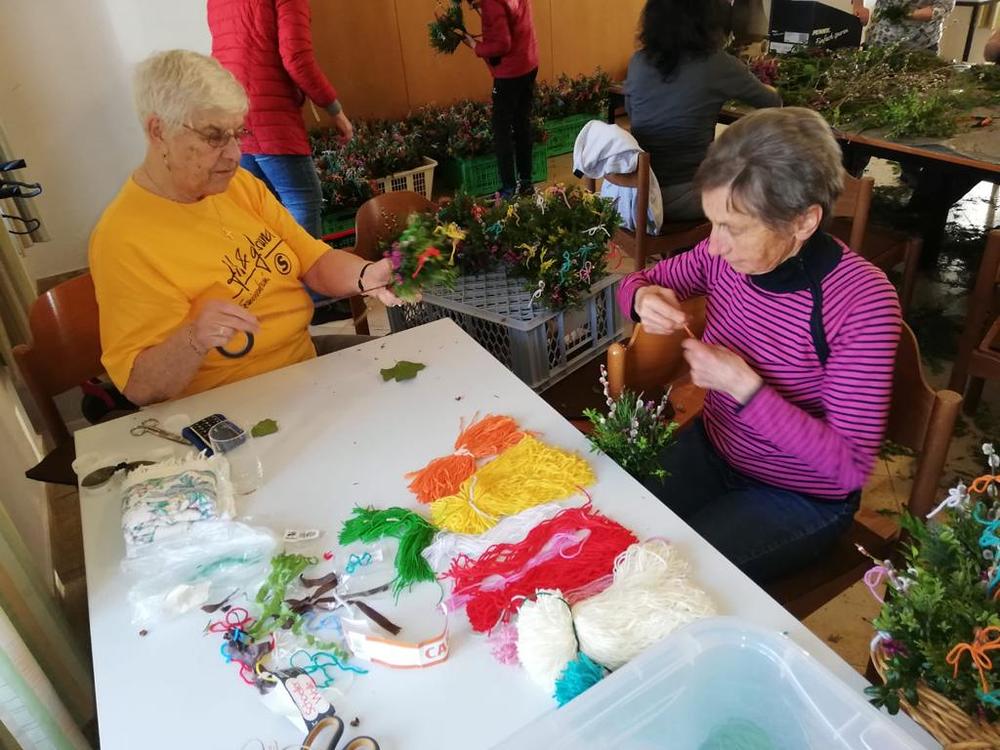 Fakten: 25 Frauen an 1 1/2 Tagen 500 Palmbuschen gebunden.