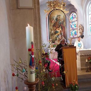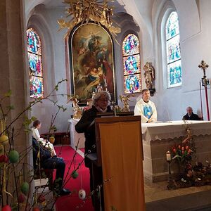 Aus aktuellem Anlass verarbeitete sie darauf das Thema „Frieden“ und stellte ihre Gedanken der Feiergemeinschaft beim Festgottesdienst am Ostermontag, 18. April vor.
