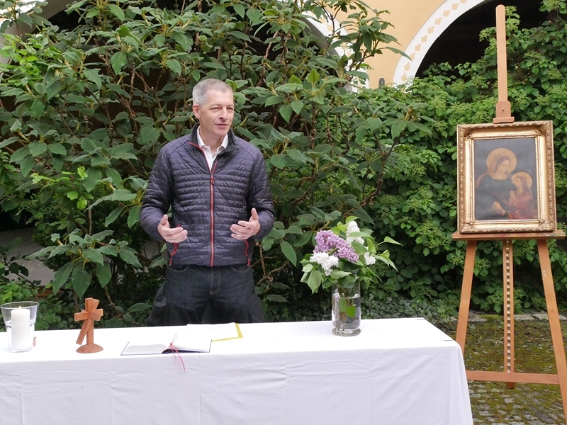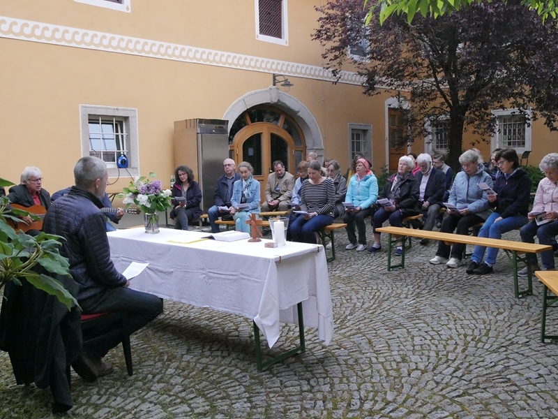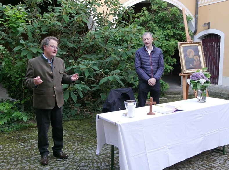 Die Kath. Männerbewegung gestaltete am 13. Mai eine Maiandacht zum Thema: Magnificat - Die Niedrigen werden erhöht. Gastgeber Karl Fischer freute sich über zahlreichen Besuch auf seinem Baumgartnerhof.