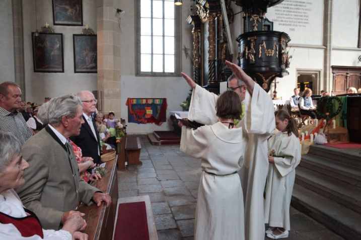 Schon bei der Begrüßung zum Festgottesdienst hieß es: …in einer Ehe gibt es immer Neues zu entdecken, neue Herausforderungen kommen auf uns zu, andererseits kann man an so einem Tag wie heute auch zurückschauen und reichlich ernten. Das ist ein Grund zum Feiern: 4 Silberjubelpaare, 4 Rubinjubelpaare, 3 Goldene Hochzeitspaare, 1 Diamantenes Jubelpaar und 1Eisernes Jubelpaar sind heute mit ihren Familien hier.