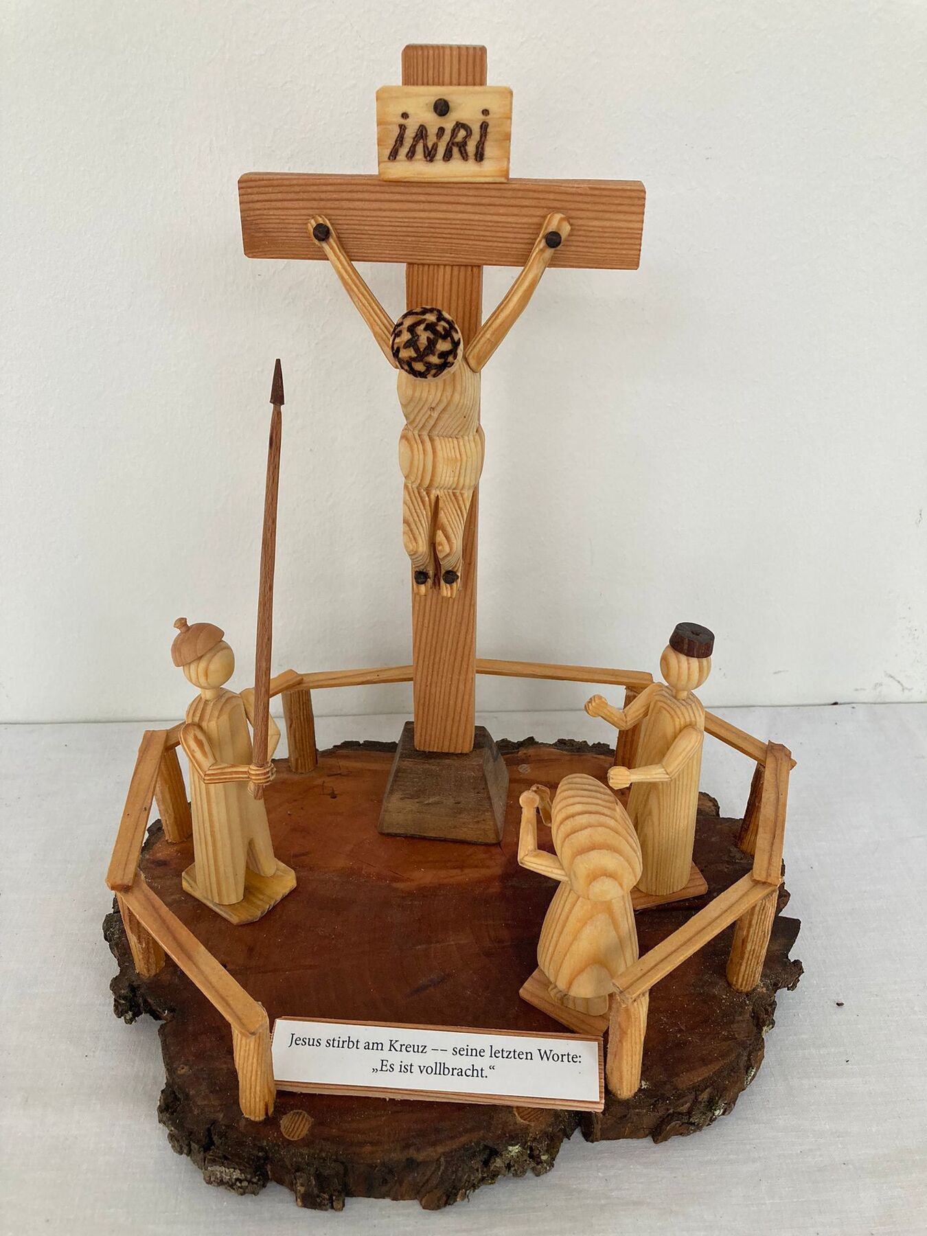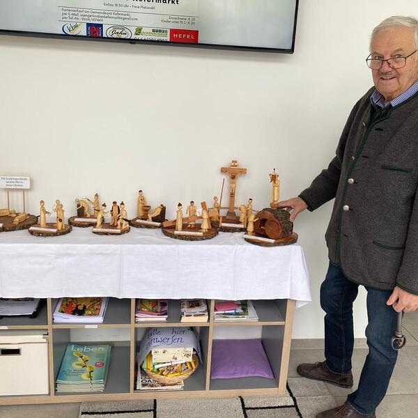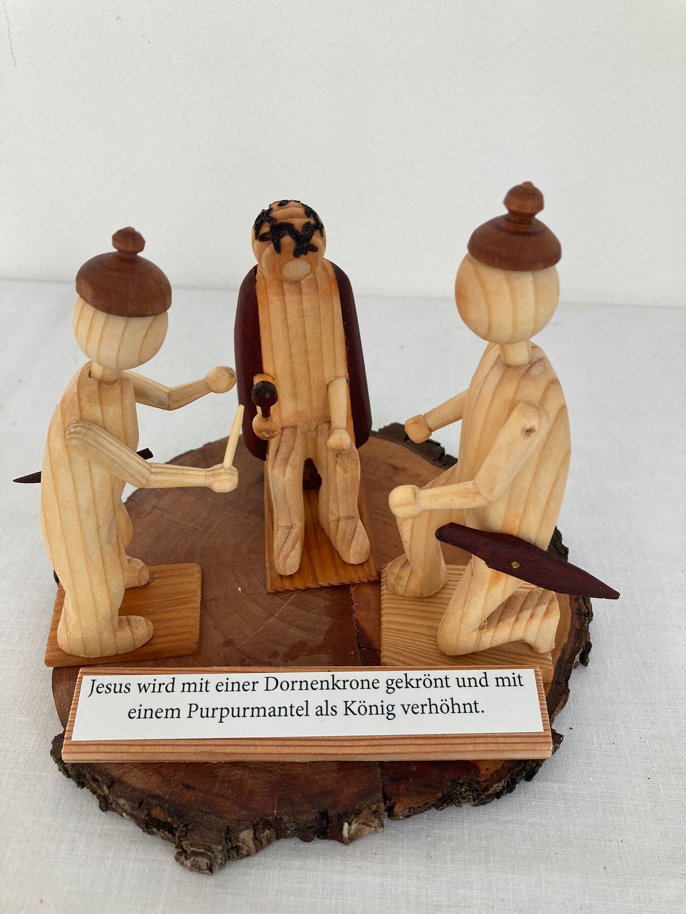 Mit viel Mühe, Detail und Feinstarbeit hat Manfred Danner eine ganz einzigartige Fastenkrippe gebastelt. In 9 Stationen stellt er Auszüge aus der Leidensgeschichte Jesu, von der Ölbergszene bis hin zur Auferstehung, dar.