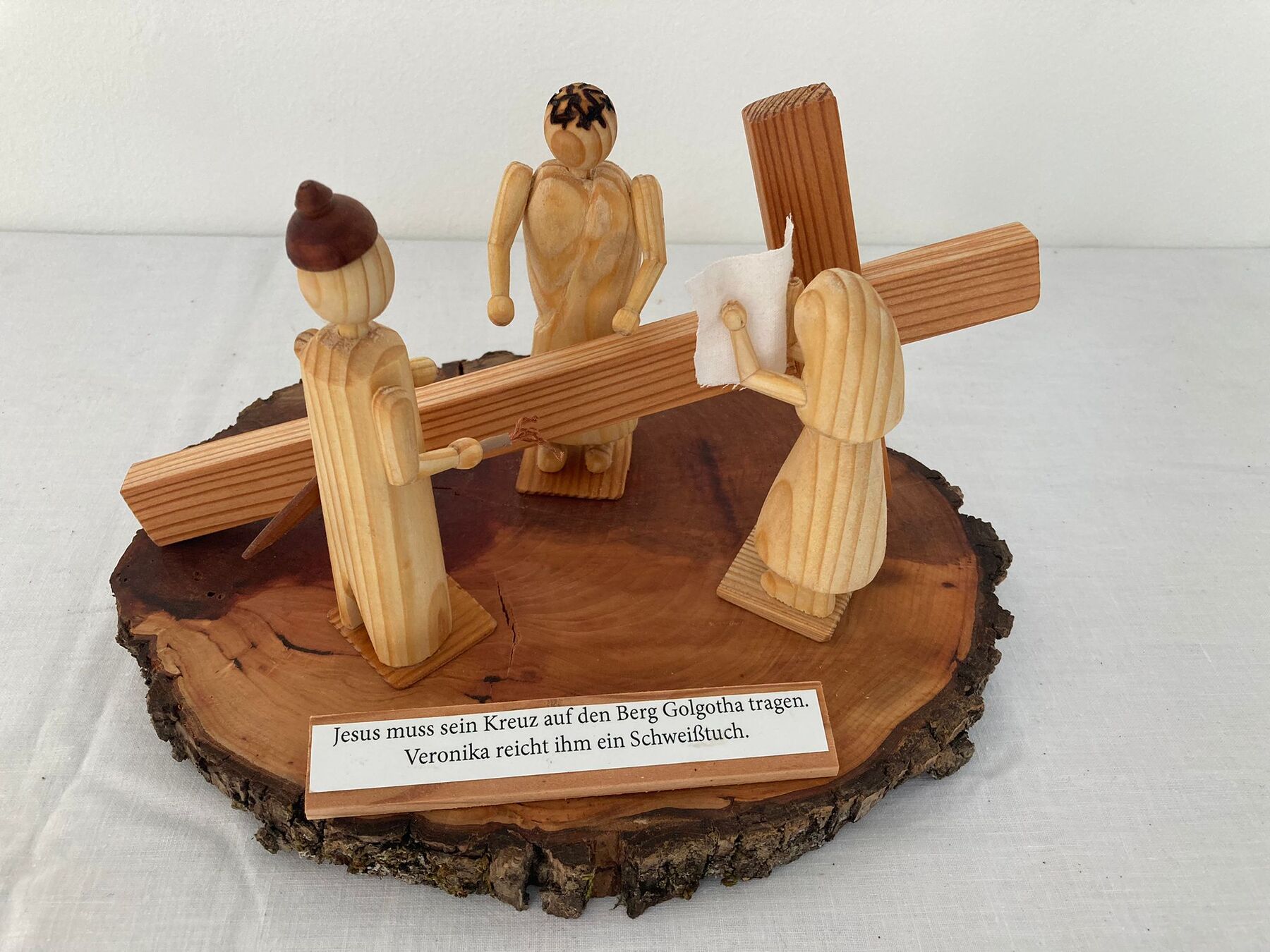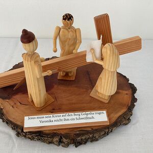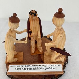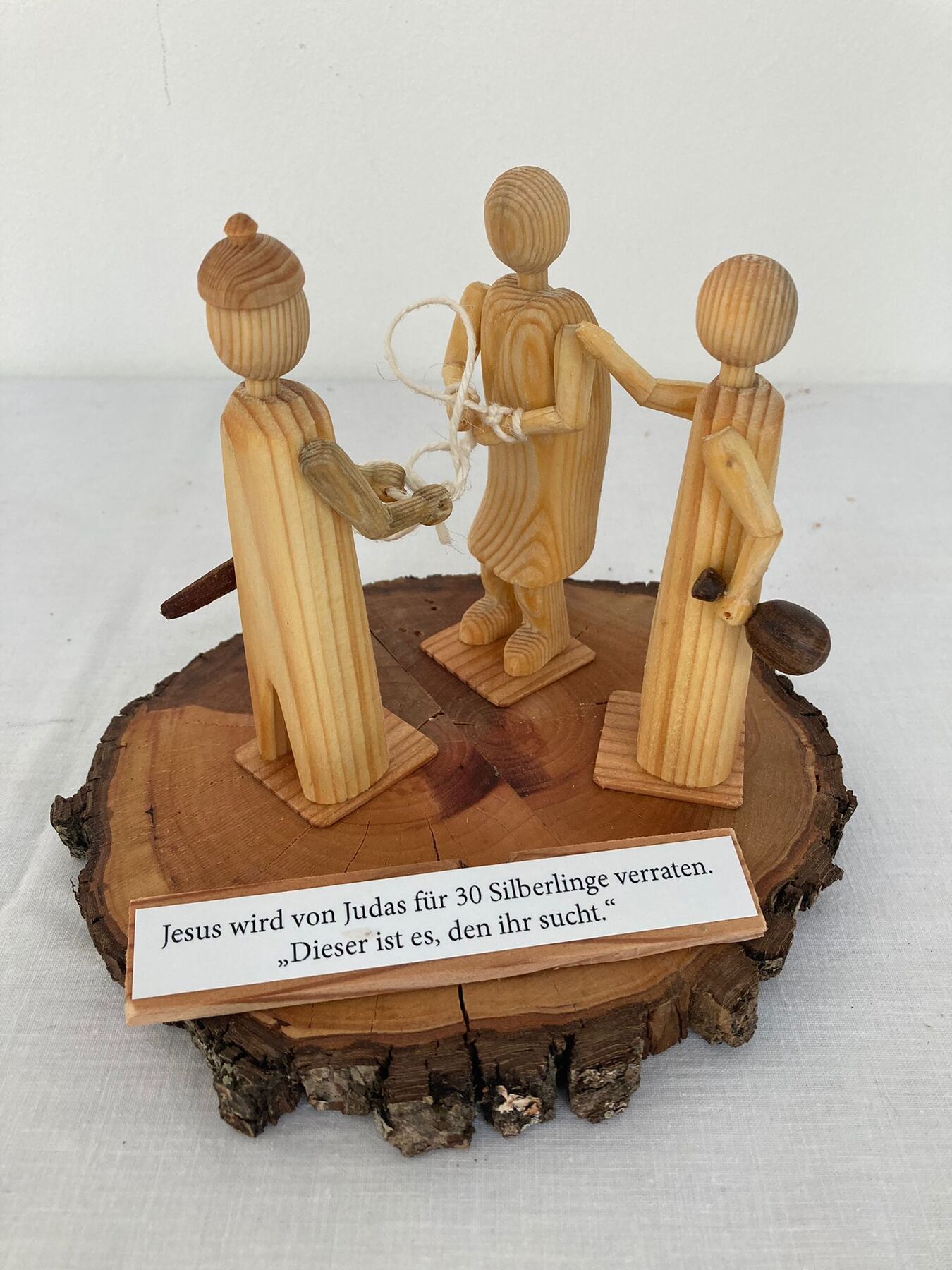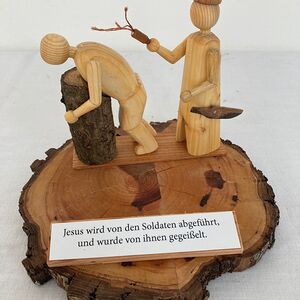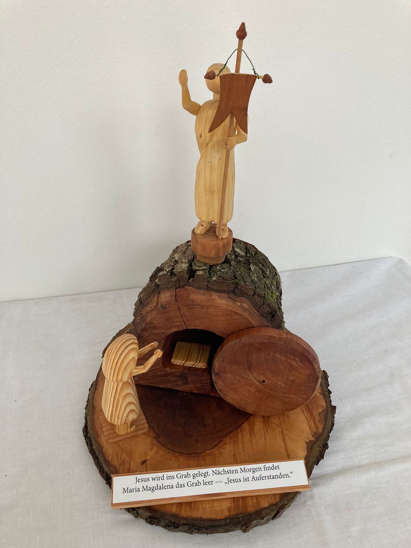 Mit viel Mühe, Detail und Feinstarbeit hat Manfred Danner eine ganz einzigartige Fastenkrippe gebastelt. In 9 Stationen stellt er Auszüge aus der Leidensgeschichte Jesu, von der Ölbergszene bis hin zur Auferstehung, dar.