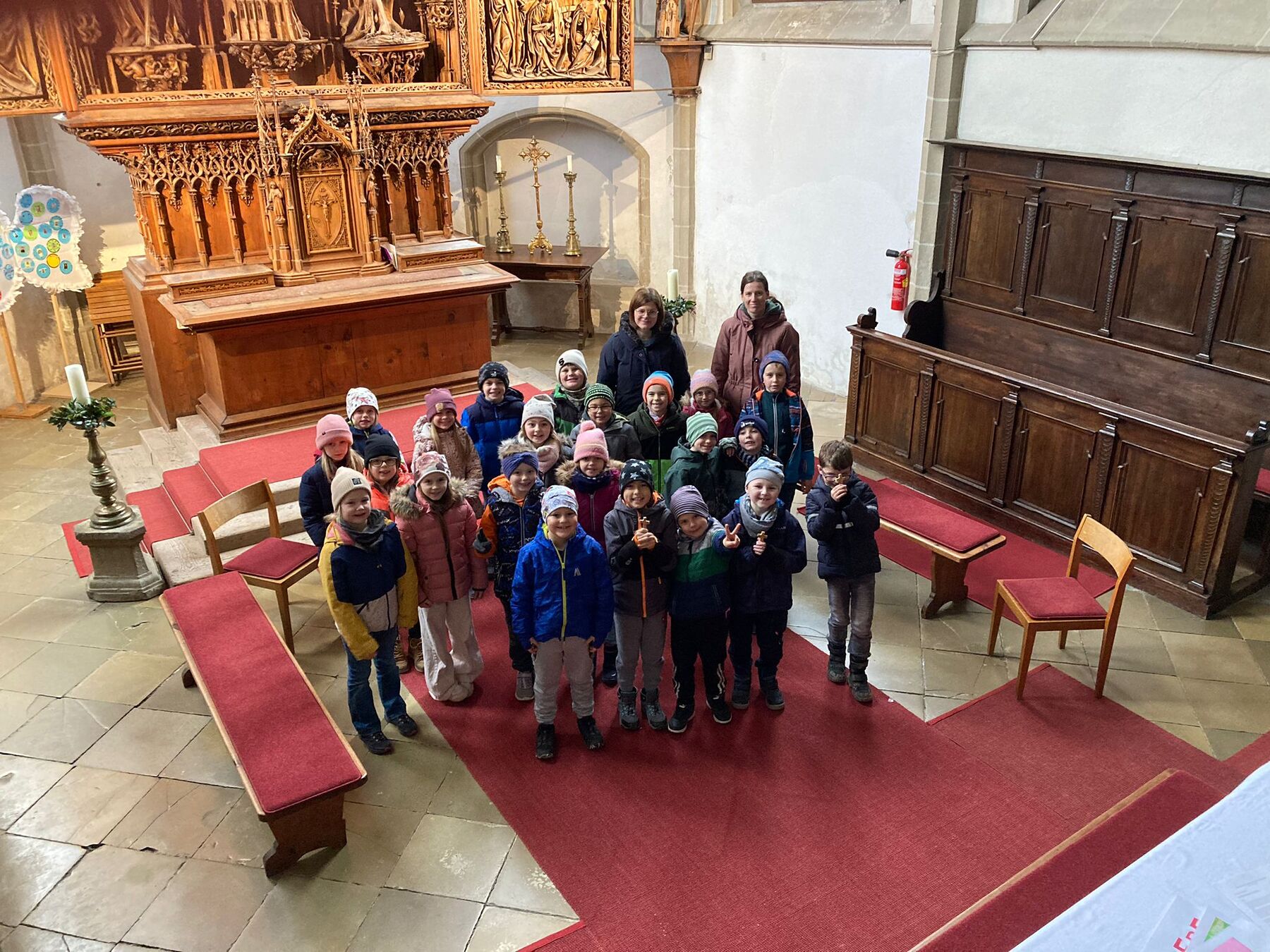 In unserer Pfarre bereiten sich 22 Kinder auf das Fest der Erstkommunion vor. Mit einer Kirchenführung sind wir im Jänner gestartet. Viel gab es im Kirchenraum zu entdecken und zu besprechen. Ein besonderes Highlight ist der gemeinsame Turmbesuch, bei dem die verschiedenen Glocken und ihre Klänge bestaunt wurden.