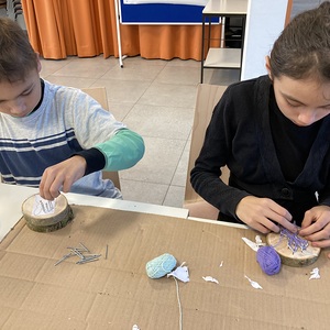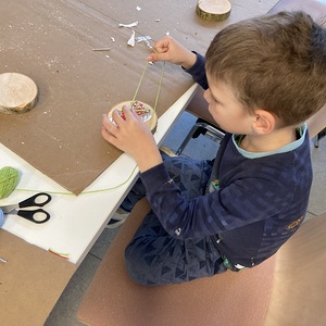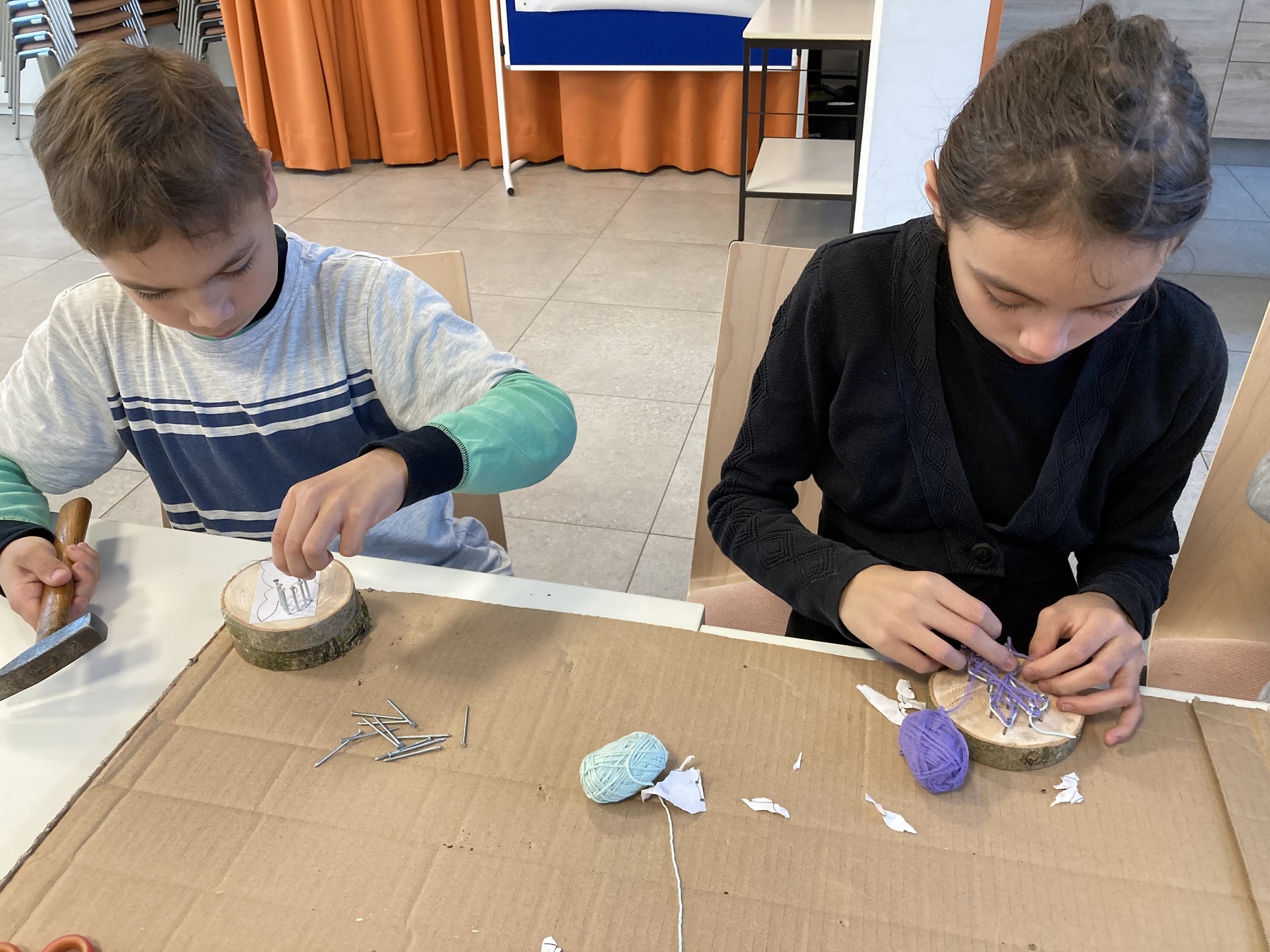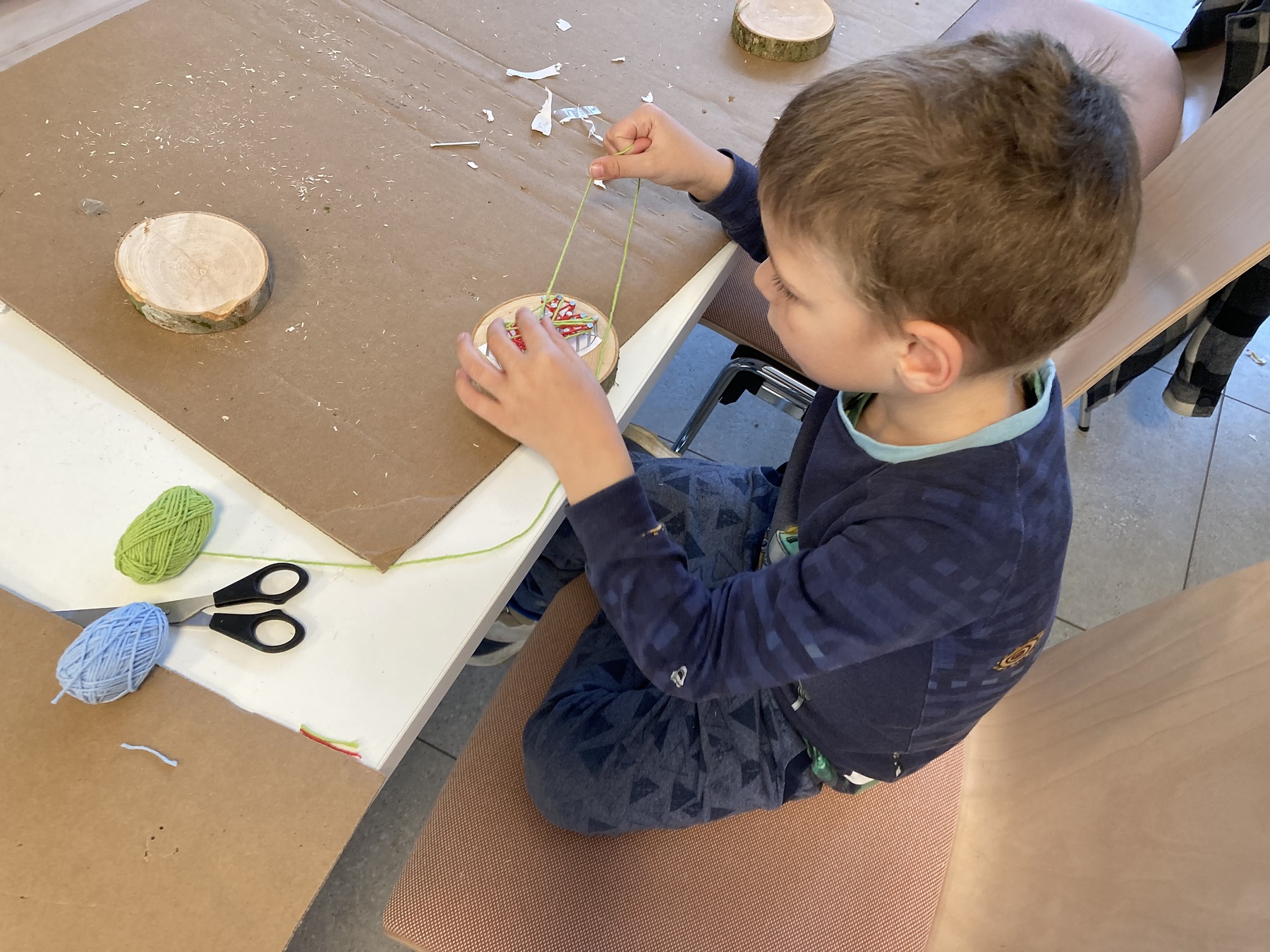 In der Jungschar-Osterstunde wurde zunächst fleißig nach der String-Art gebastelt.