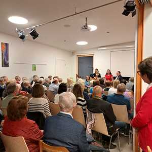 Volles Pfarrzentrum bei der Lesung "Wia uns da Schnawi gwachsn is"