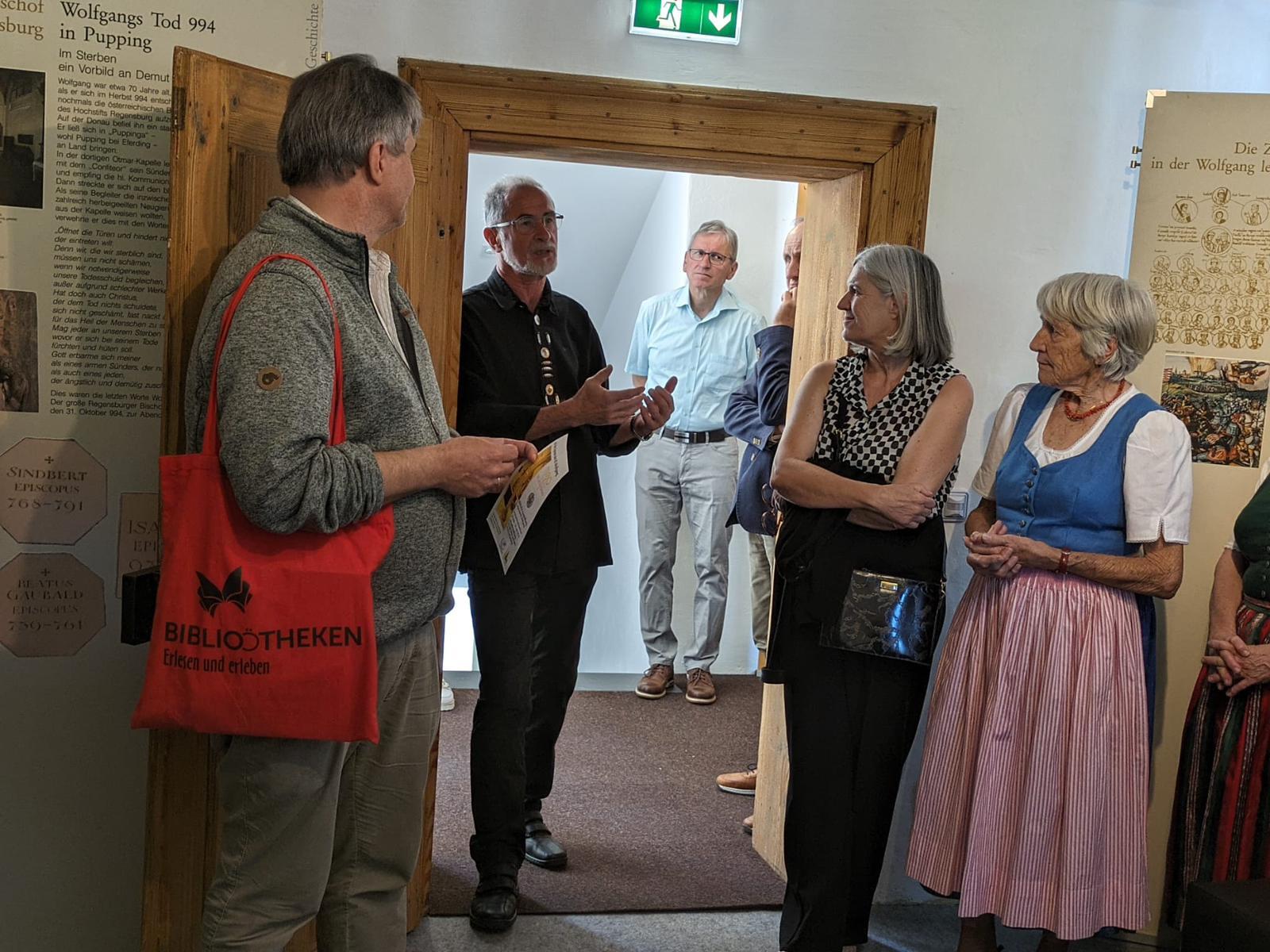 Zum 1100. Geburtstag unseres Kirchenpatrons, dem Heiligen Wolfgang, wurde am Pfingstmontag, 20. Mai 2024 nach dem Gottesdienst eine Bildtafel-Ausstellung über das Leben dieser bedeutenden Persönlichkeit im Cafè Stöckl eröffnet.