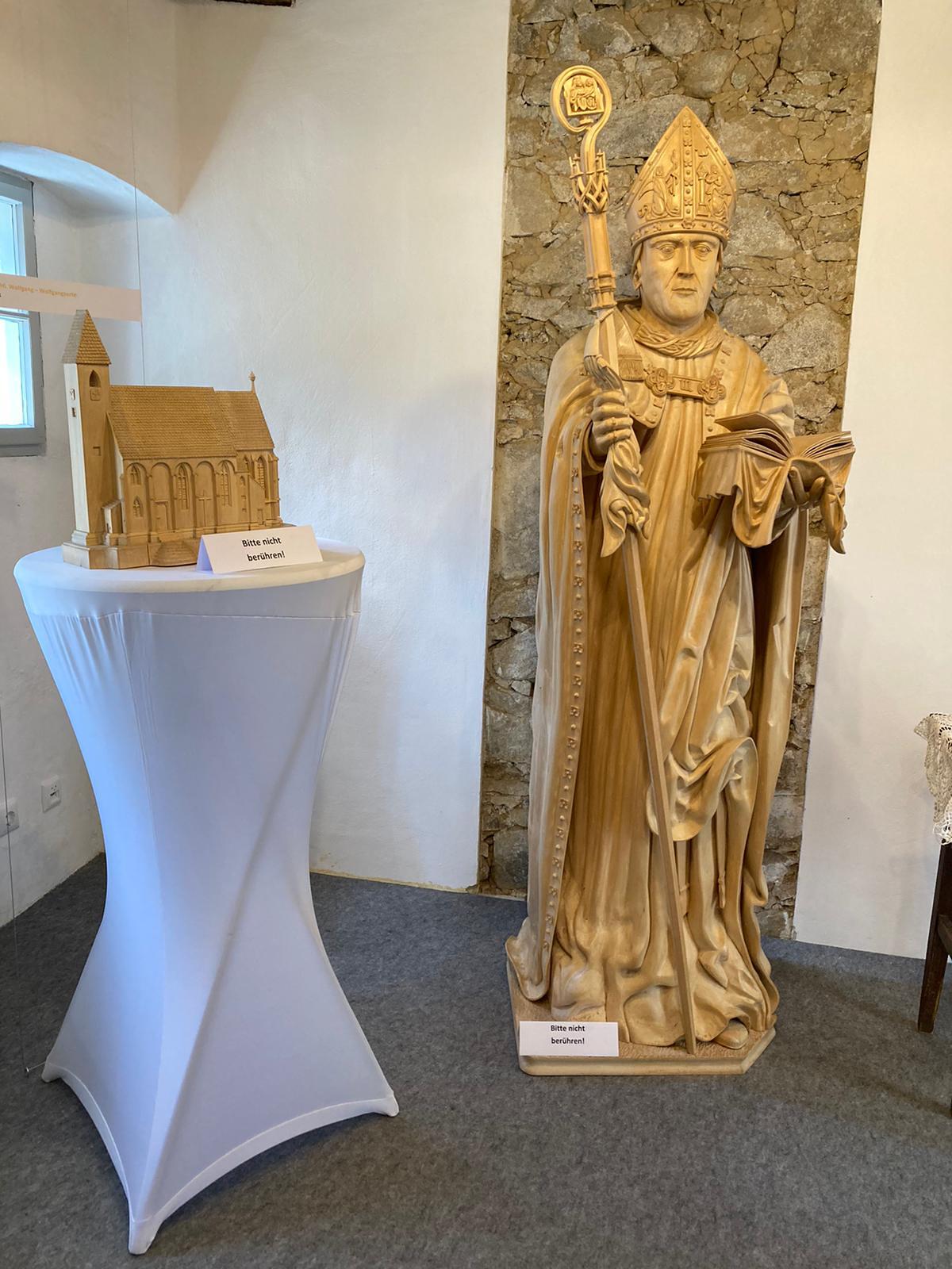 Ein besonderes Highlight dieser Ausstellung ist wohl der in Originalgröße geschnitzte Wolfgang von Herrn Aufreiter, der sich zur Aufgabe machte, die Figur des Heiligen unseres Altares originalgetreu nachzuschnitzen!