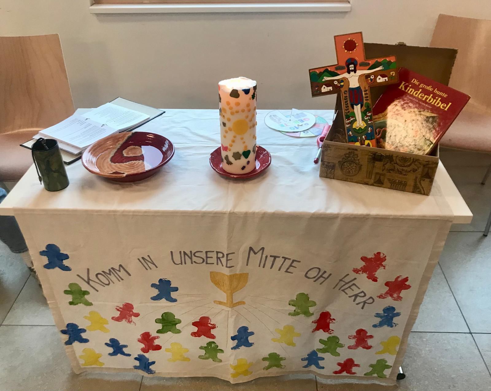 Wir bestiegen mit Mose schon den Berg Horeb, wo wir die Geschichte vom brennenden Dornbusch mit Bildern untermalt hörten, Windlichter bastelten und Lieder sangen.